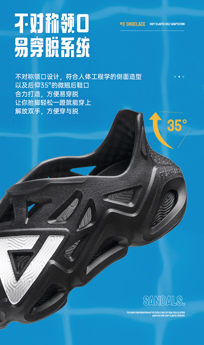 细节上:符合人体工程学的侧面造,以及不对称鞋口+后仰35°的微翘设计,让你抬脚轻松一蹬就能穿上,解放双手,方便穿与脱。