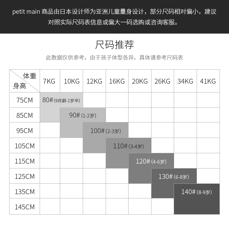 petit main为Narumiya公司旗下童装品牌之一,在日本具有超高人气(日本亚马逊上有售),致力于0~9岁儿童的服装产业,走的是时尚、自然、舒适的路线。衣服的本身没有太多复杂的装饰,更注重于在风格、款式上的设计,简单而不失时尚、自然、可爱,以此来吸引孩子和妈妈们的视线。