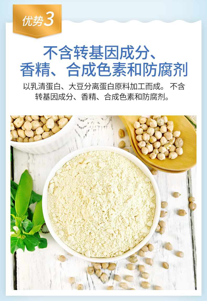 这款蛋白粉,精选优质双蛋白,科学补充植物蛋白和动物蛋白,有助增强氨基酸的互补作用,提高蛋白质的利用率。蛋白质含量高达80%,蛋白质消化率校正氨基酸计分(PDCAAS)为1,更容易被人体吸收利用。不添加激素、色素、人工香精和蔗糖,是健康纯净的蛋白质粉,更符合现代健康理念。