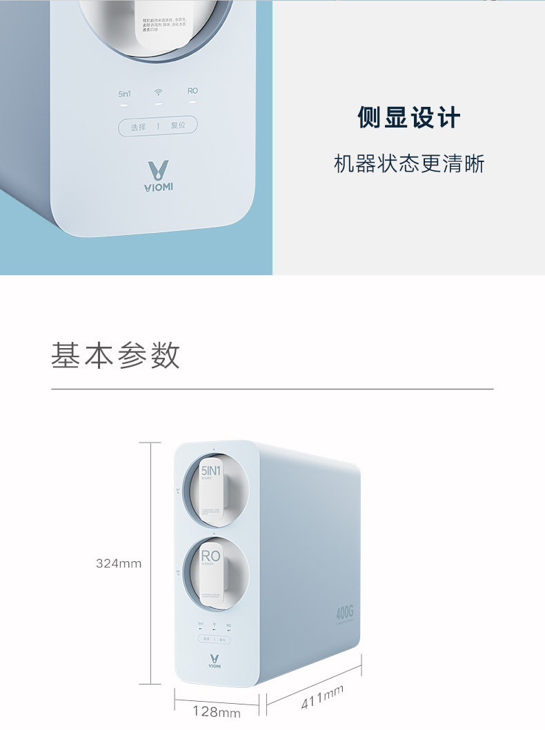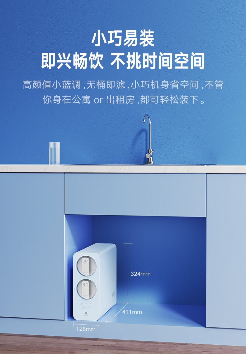 600G通量的无桶RO反渗透净水器,也是很好的价格,小米400G的就得999元。