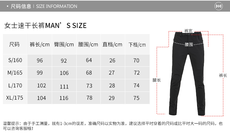 这款地球科学家女速干裤,使用韩国进口高弹面料,主要成分是88.7%的抗撕裂速干尼龙,耐磨抗撕裂不易破损。尼龙纱线呈多股中空状,中空管道快速吸水快速向四周分散,加大挥发面积达到快干,通常在雨天淋湿后不到1小时就能干。
