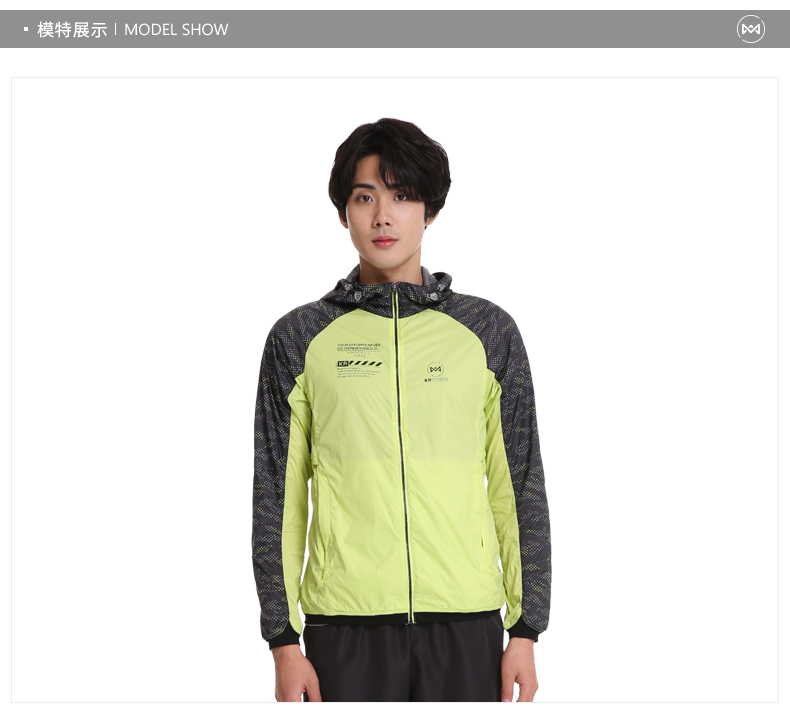 在款式上,一体连帽设计,腋下有专门的透气孔,弹力松紧袖口和下摆防止漏风,YKK拉链,衣面上是清晰鲜明的印花。