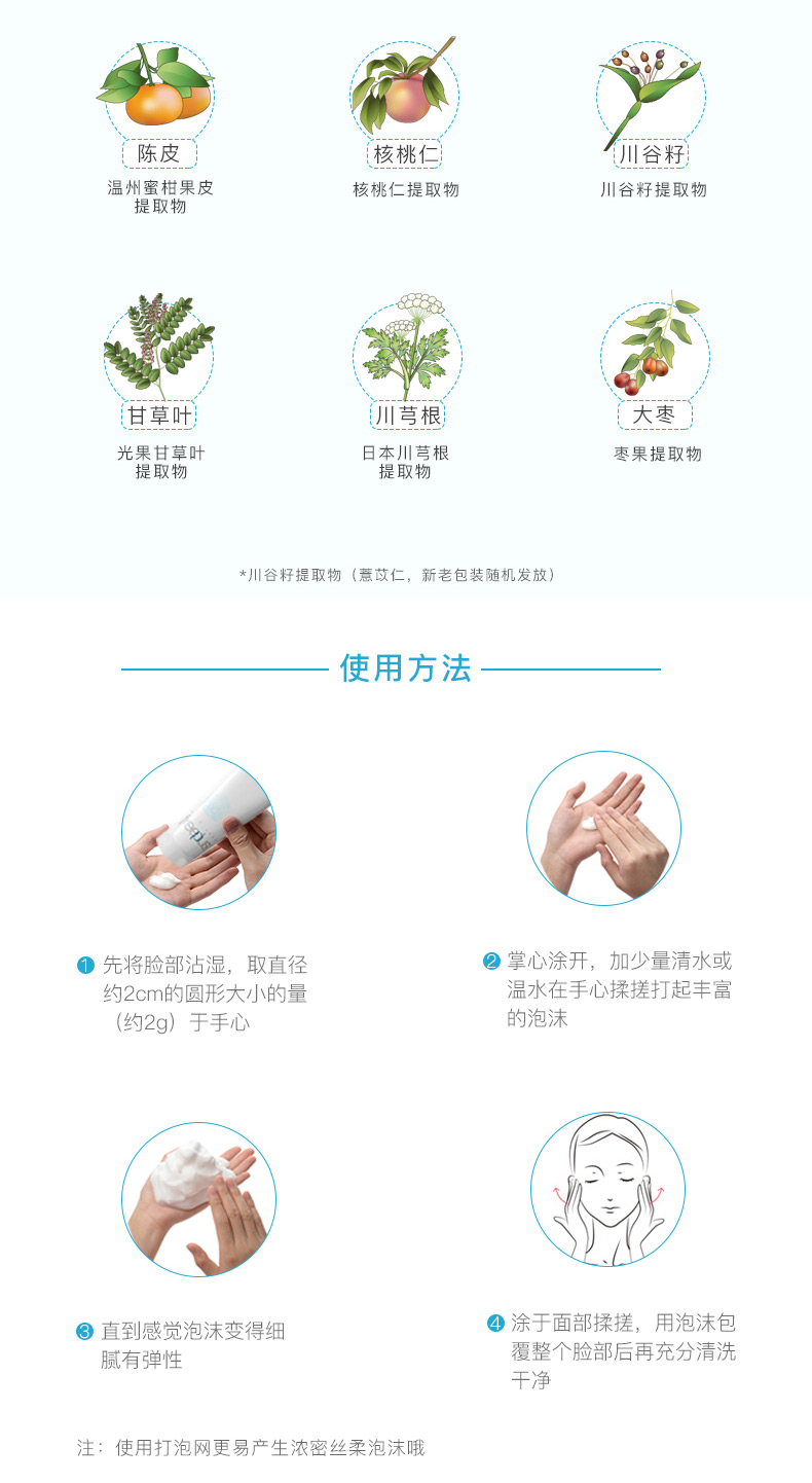 萃取了植物养肤成分,令肌肤温润平和。里面的成分含有陈皮,核桃仁,川谷籽,甘草叶,川芎根,大枣,6种植物精粹相互作用,滋养修护肌肤。