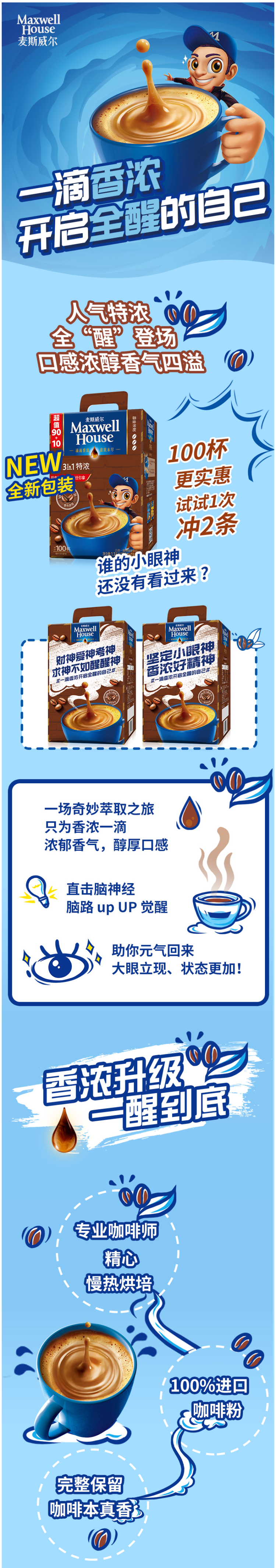 麦斯威尔 经典/特浓咖啡2种可选,精选上等咖啡豆,深度烘培,并经过冷凝工艺萃取咖啡精华,有如煮制咖啡般香气的醇浓咖啡,热水冲调即可饮用。