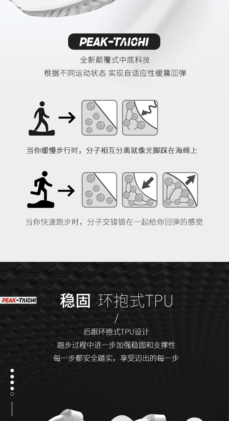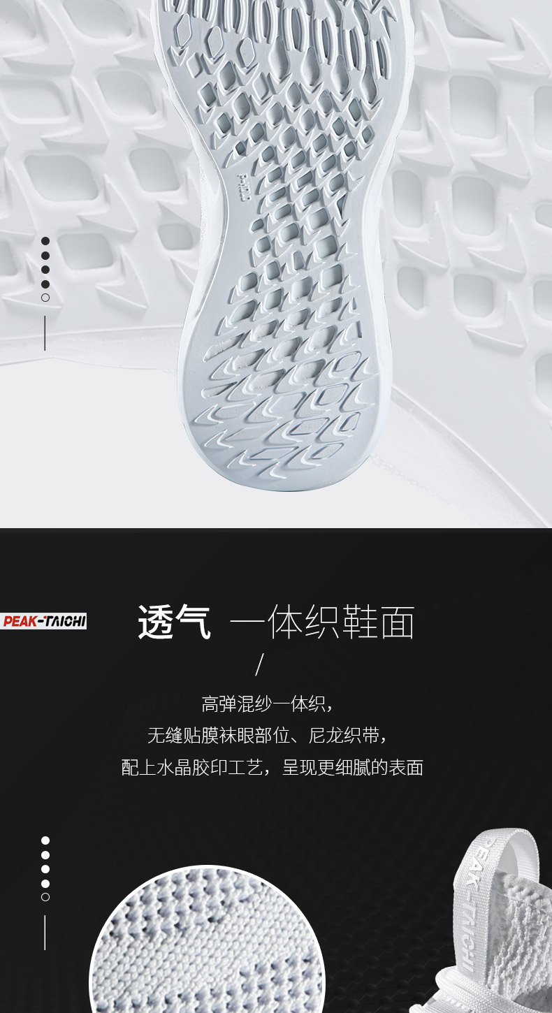 这款跑步鞋,采用高弹混纱一体织鞋面,无缝贴膜袜眼部位、尼龙织带,配上水晶胶印工艺,呈现更细腻的表面,整体也增加了立体感,支撑系统上,采用P-HOLD支撑系统。全新的开窗抗扭转TPU,引入立体加强筋,强化了鞋子的抗扭转性。后跟环抱式后跟TPU,立体结构,且增加了后跟包裹面积,防止侧翻,让支撑更加稳定。鞋底纹路借鉴车胎花纹排列,增加了抗磨性与抓地力。