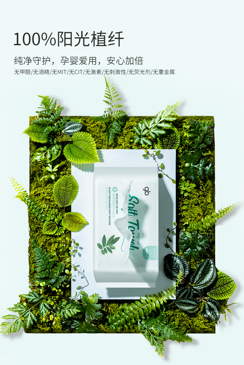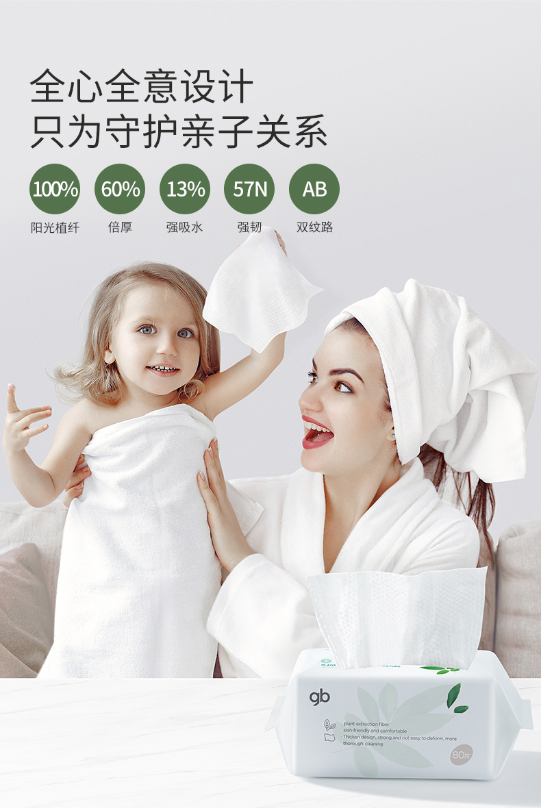 白绵柔巾,天然植物萃取,柔韧兼备,干湿两用,加厚60%,加倍水润体验。