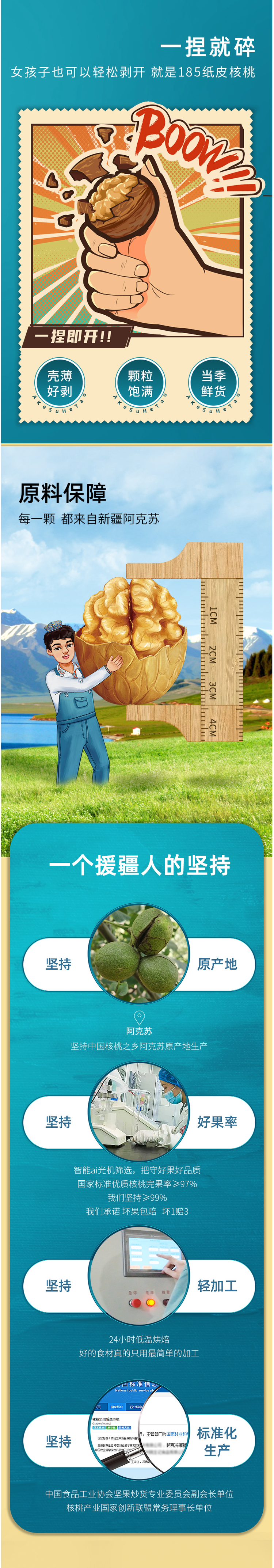 这款浙疆果新疆185纸皮核桃,选用新疆阿克苏的纸皮核桃,这是属于新疆和田的特有品种,壳薄如纸,手捏即开,食用非常方便。果壳纹理清晰,天然光洁无漂白,果肉橙黄饱满,入口脆感无涩味。
