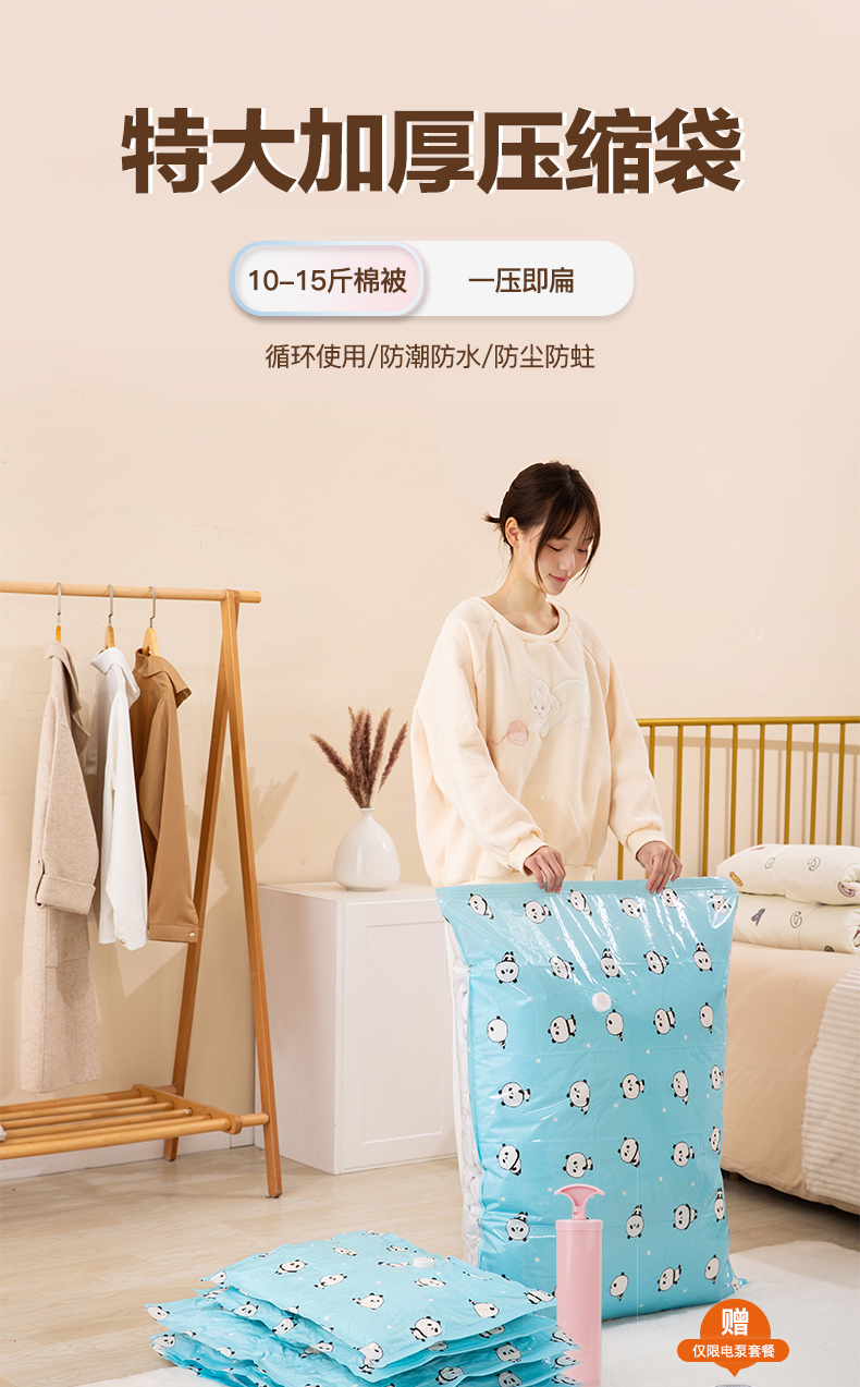 天猫贝易纳旗舰店29.9元,可领10元优惠券,实付19.9元到手,第一款这个价格。包含:大号100*70cm*2、中小号70*50cm*3、手卷50*35cm*3、手泵*1。此外还有多种套餐可选,略有差价。专业家居收纳整理,打造高品质生活。优质的PAPE材质健康环保,防潮防霉,防菌防尘,轻松解决各种收纳问题。