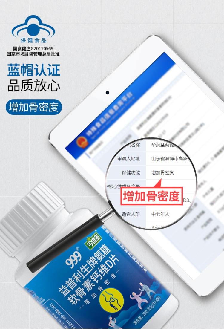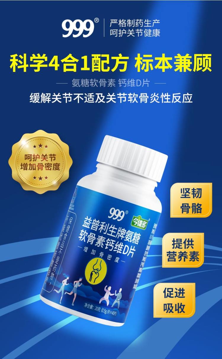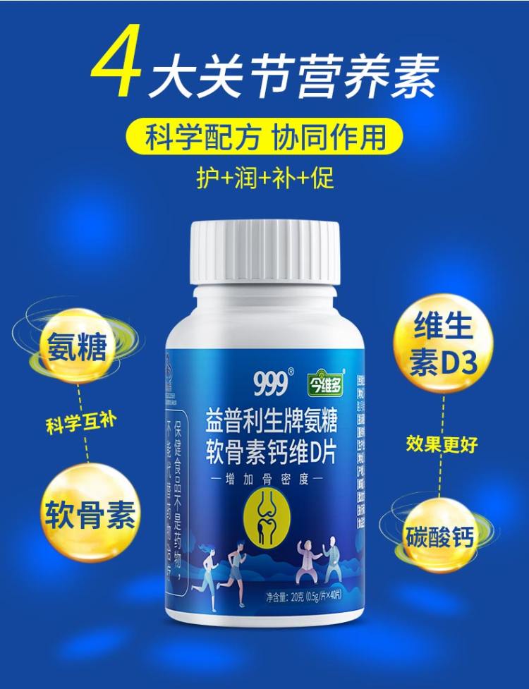 天猫999保健食品旗舰店59.9元,可领40元优惠券,实付19.9元到手;补软骨护关节。专为国人设计!线下药店同款58元!四重骨营养剂,增加修复骨密度,关节受损补充软骨能量,打造骨骼健康!