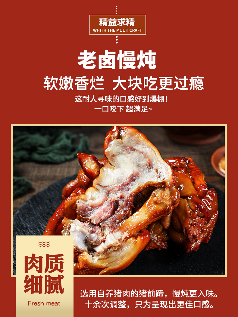 天猫超市0元,下单立减10元,可领10元优惠券,实付19.9元到手;养肉猪选用猪前蹄,秘制高汤老卤慢炖,均匀入味,肥而不腻,酥而不烂,鲜香嫩滑。
