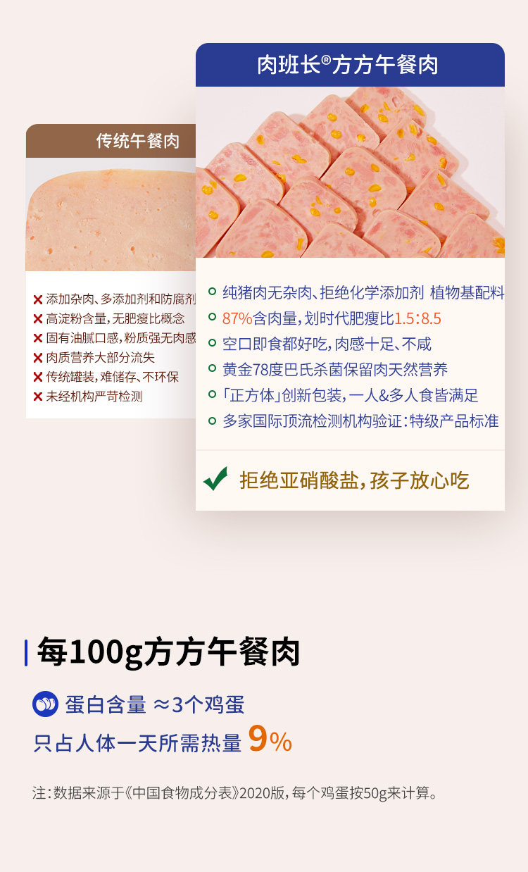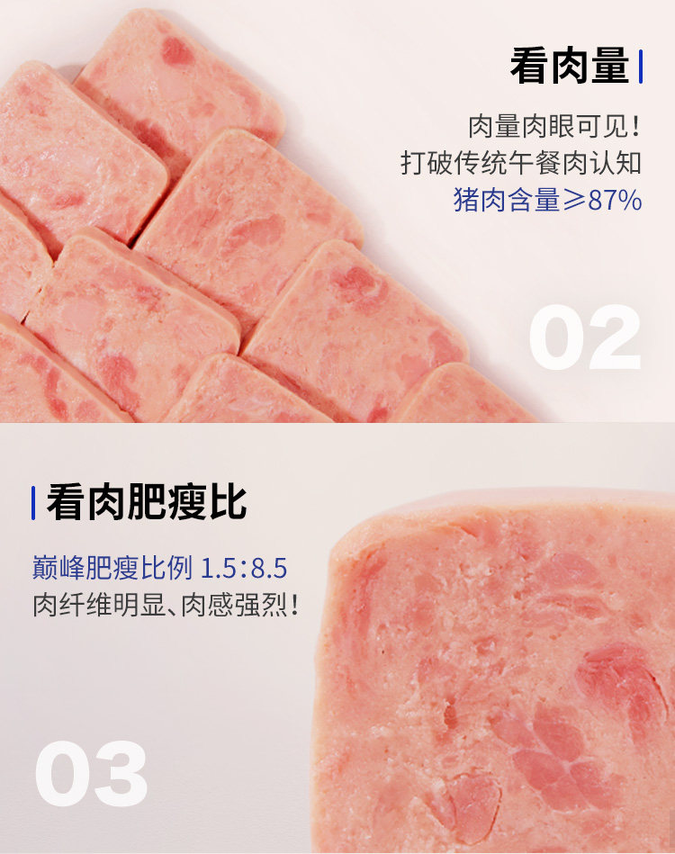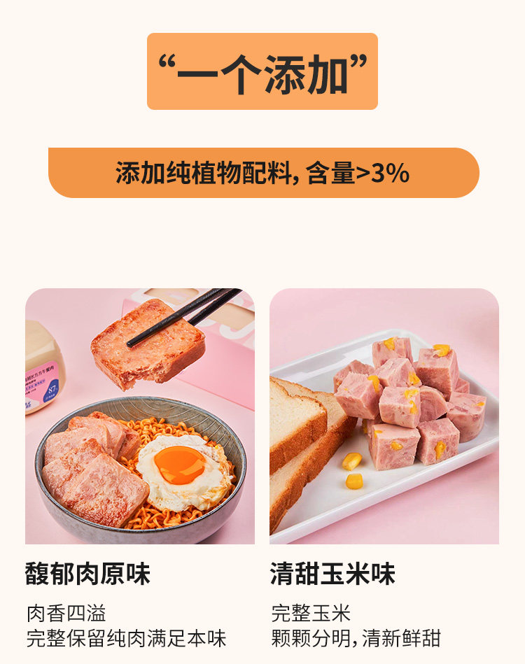 6项0添加,不做淀粉肉,只加低钠盐,,一场彻底的午餐肉的革命就是空口即食都好吃~可以放心的配方,六无一添加,不同吃法享受不同阶段的美味~领券链接点此