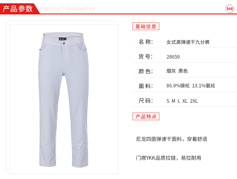 面料中还混有13.1%氨纶,使面料具有四向弹力,即上下左右都拥有弹性,伸展性好还抗皱,在腿部活动时没有拉扯紧绷感,具有良好的穿着体验。