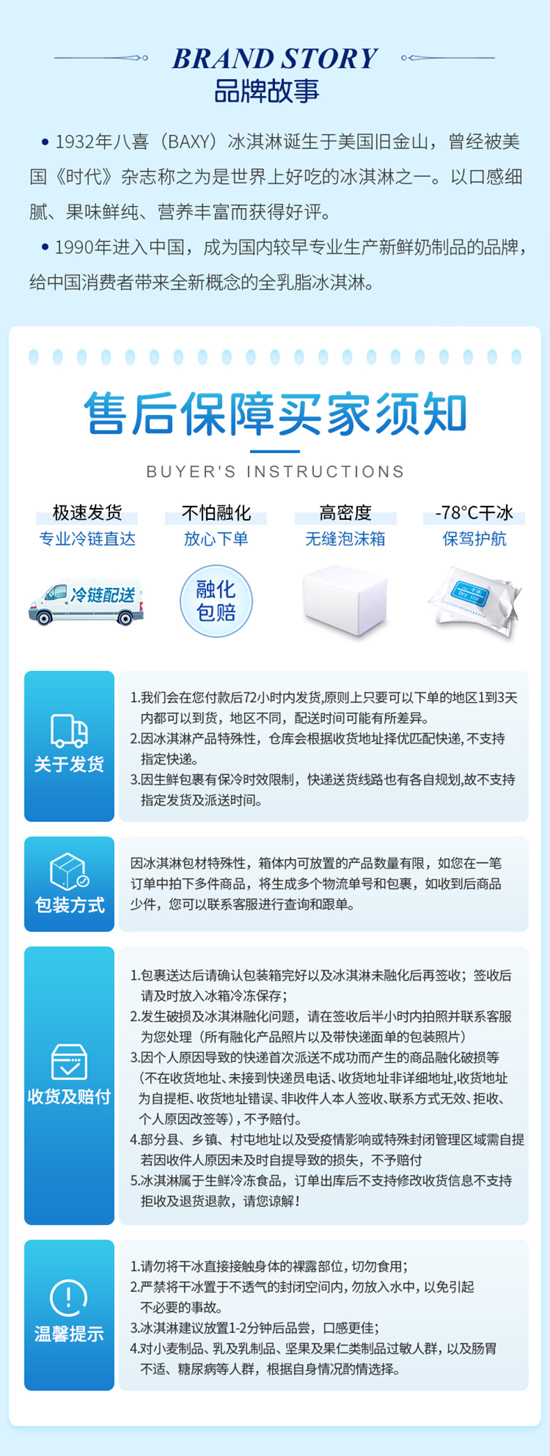 1932年八喜(BAX)冰淇淋诞生于美国旧金山,以口感细腻、果味鲜纯、营养丰富而获得好评。曾经被美国《时代》杂志称之为是世界上好吃的冰淇淋之ー。