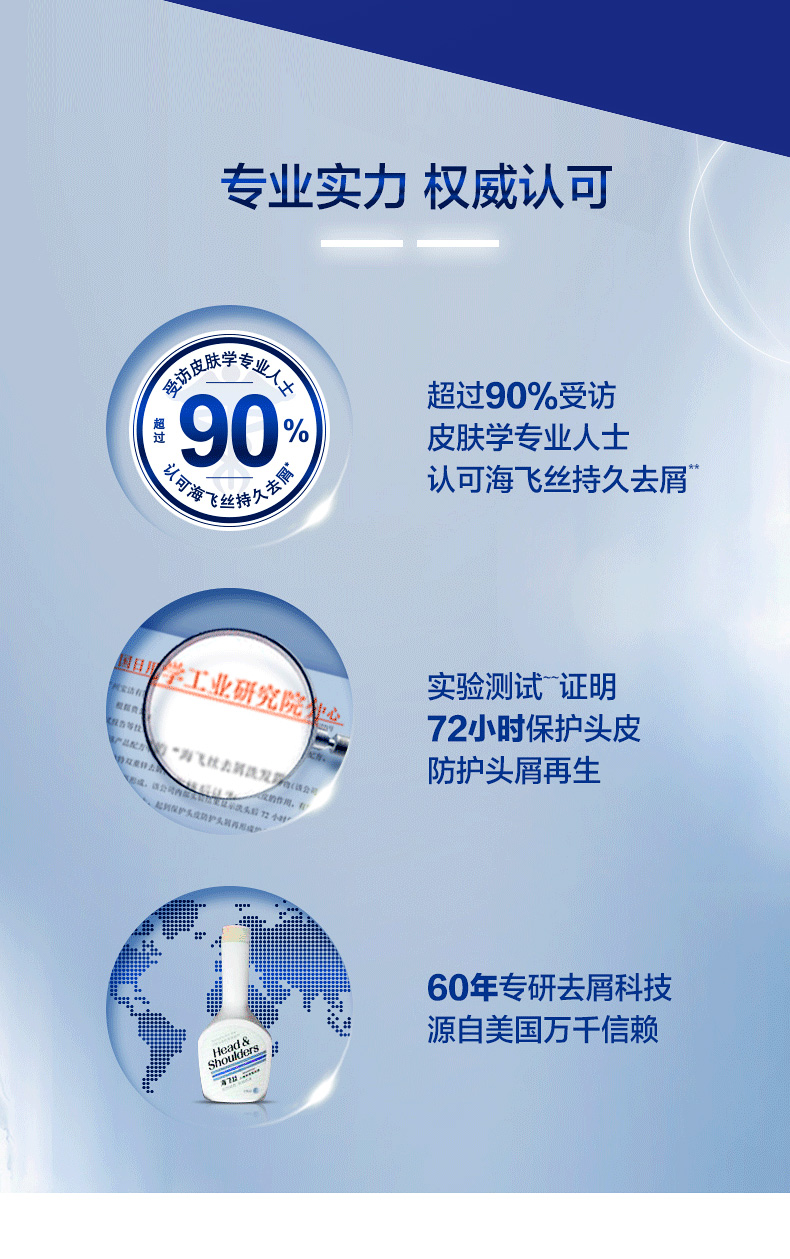 海飞丝是宝洁旗下出色的洗发护发产品,以出色的去屑能力为卖点,是世界上第一个研究出活性去屑成分的洗发水的品牌,1991年进入大陆市场后,海飞丝成为宝洁在大陆力推的洗护品牌,独有的去屑研究成果,让其成为大众洗护中的明星产品。