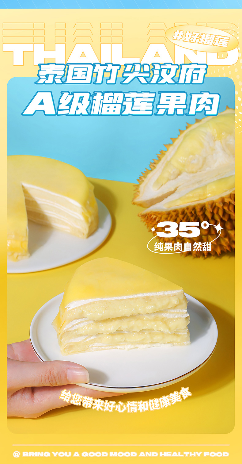 第一款单盒约500g,榴莲千层中肉高达200g,占整体一半,选用优质安佳黄油、金枕榴莲、进口芝士等原材料制作,香浓味美,口感绵软细腻。