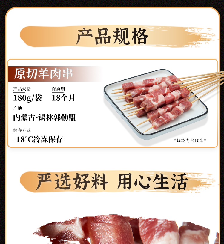 这款顺鑫鑫源 内蒙古原切羊肉串 ,规格:180g*5袋 ,精选内蒙古乌珠穆沁6月龄羔羊肉,原生态草原散养,无公害食品,肥瘦相间,肉质细腻弹滑,鲜香入味,后腿肉整肉原切。