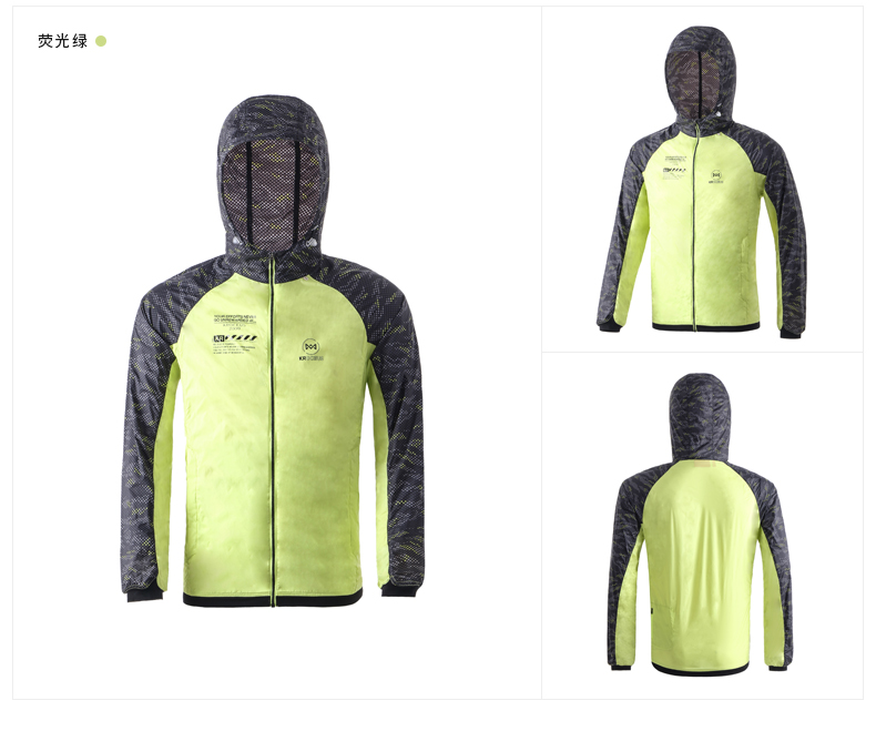 在款式上,一体连帽设计,腋下有专门的透气孔,弹力松紧袖口和下摆防止漏风,YKK拉链,衣面上是清晰鲜明的印花。