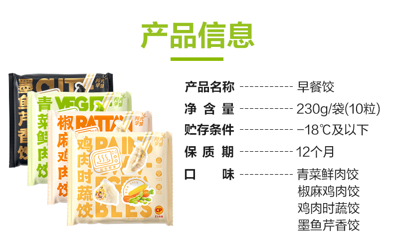 这款正大食品 彩虹早餐饺,面点大师匠心调制,0.7mm超薄面皮,柔韧细腻,完美馅料比例67%,多汁鲜美,食材全部来自正大自己养殖,绿色健康。