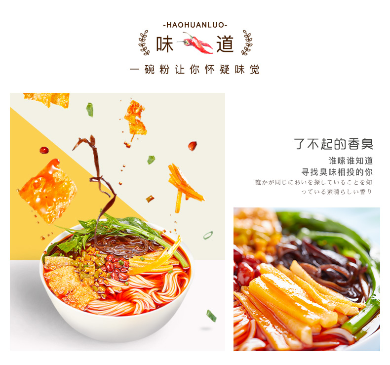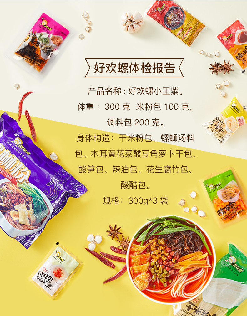 螺蛳粉是广西的传统小吃,具有辣、爽、鲜、酸、烫的独特风味。好欢螺一直口碑不错,螺蛳粉届扛把子。选料正宗,香辣可口,粉也是劲道有嚼劲。此款螺蛳粉为水煮型,内有丰富配料:卤水螺丝肉包、花生腐竹包、萝卜酸豆角包、黄花菜木耳包、酸笋包、酸醋包、红油包~