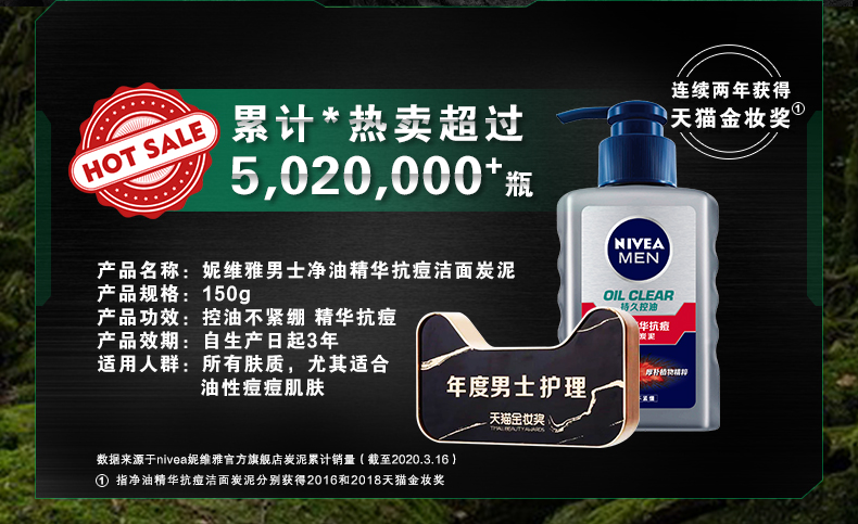 妮维雅男士精油精华抗痘洁面炭泥,尤其适合油性肌荐,能深层清洁,清爽补水易吸收,水平两平衡。专为男性肌肤设计,注入大量水分,密集保湿,提供长时间持久滋润。