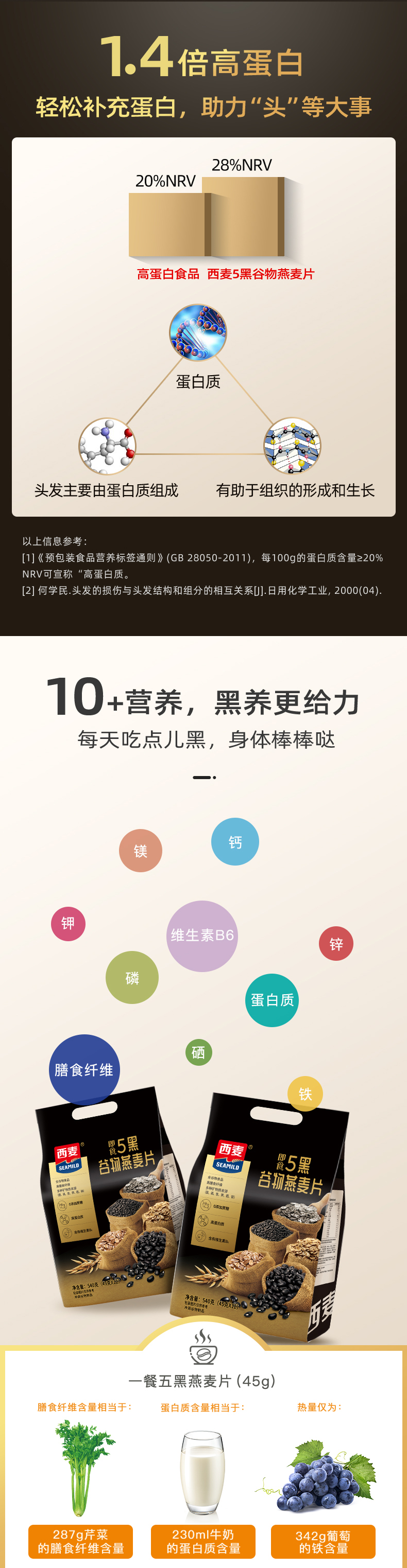 天猫seamild西麦旗舰店35.9元,下单立减5.39元,拍2件可领19元优惠券,实付34.85元到手。这款西麦 五黑混合谷物燕麦片 ,规格:45g*12包,五种黑谷物,科学配比。0添加,天然高蛋白,冲泡即可食用。
