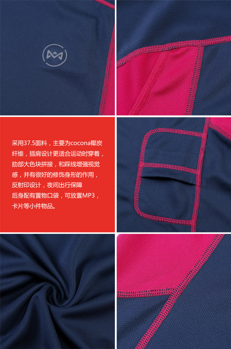 在款式和细节上,修身版型,上身会更好的贴合身形。大色块的拼接及肩部线条的修饰,使得款式上也更好看不再单调。双肩是插肩袖的设计更有利于运动时的伸展,前胸、后身、袖口还有多处反射印设计,夜间出现更安全。