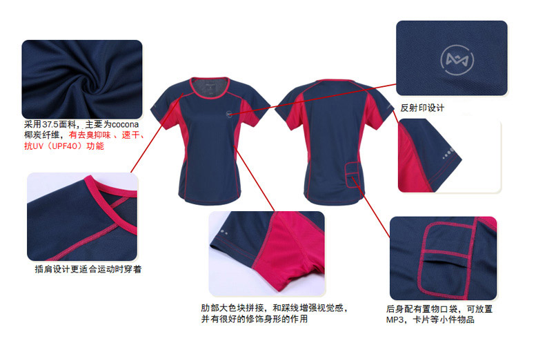 这款地球科学家女T恤,以37.5%的Cocona椰炭纤维为主,再混入聚酯纤维和弹性纤维,有很好的吸湿速干透气效果,还有很好的弹性,运动时不紧不崩;能抵抗UPF40+的紫外线,是最适合夏季运动时穿的T恤。