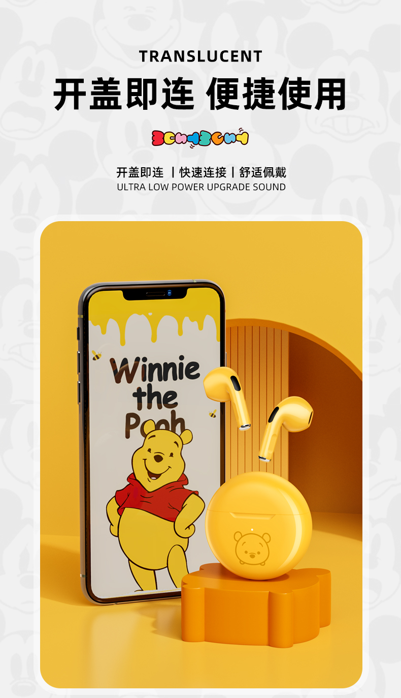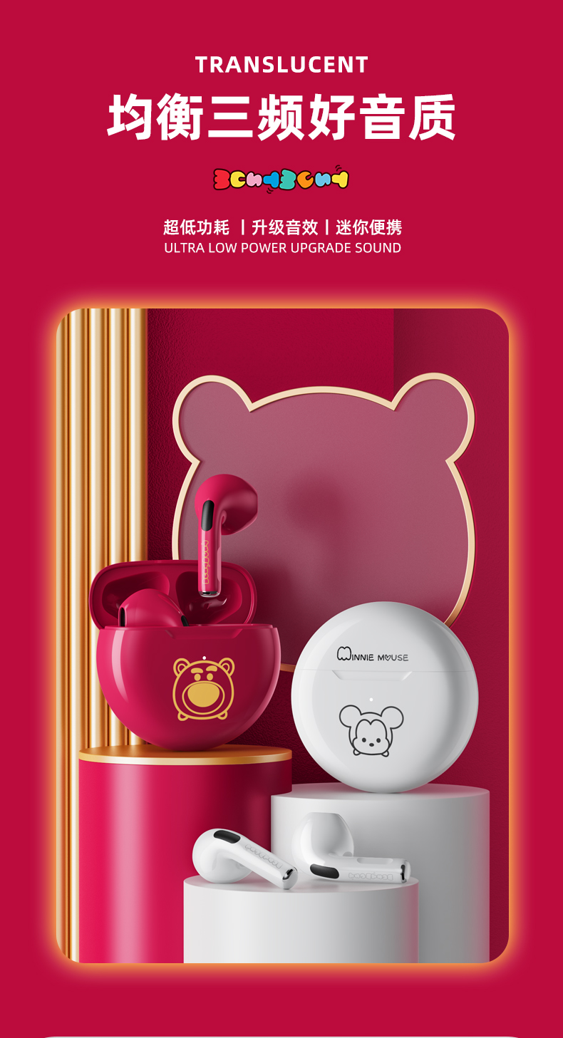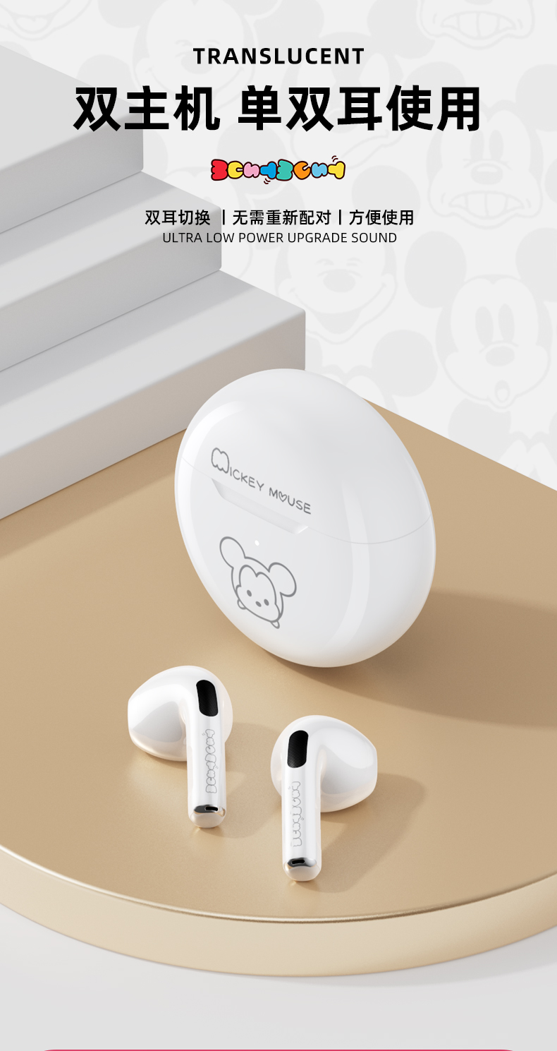 天猫声腾数码专营店99元,可领50元优惠券,实付49元到手,是正价299元的1.6折;迪士尼官方正品+开盖即连接+稳定不断连。环绕音质,CVC降噪技术。30天免费试用,3年免费换新!超长待机,颜值爆炸,音质吵好,听歌、打游戏没有杂音,无延迟,久戴不痛,防水领券链接点此