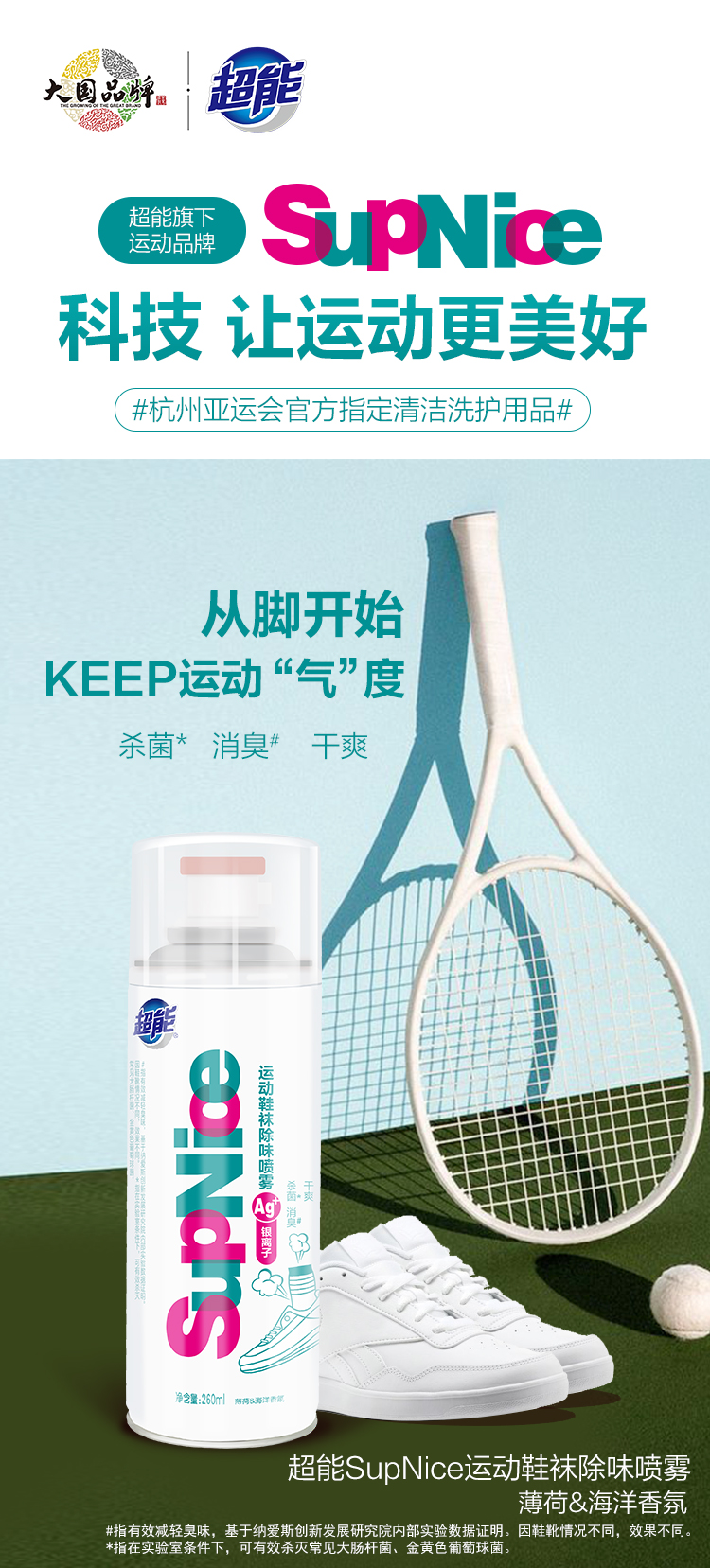 天猫超能官方旗舰店39.9元,下单立减10元,可领50元优惠券,拍2件实付19.8元到手。超能品牌旗下运动支线SupNice,添加银离子成分,快速为球鞋消臭,即喷即穿!清新的薄荷海洋香氛,让你告别汗脚尴尬。