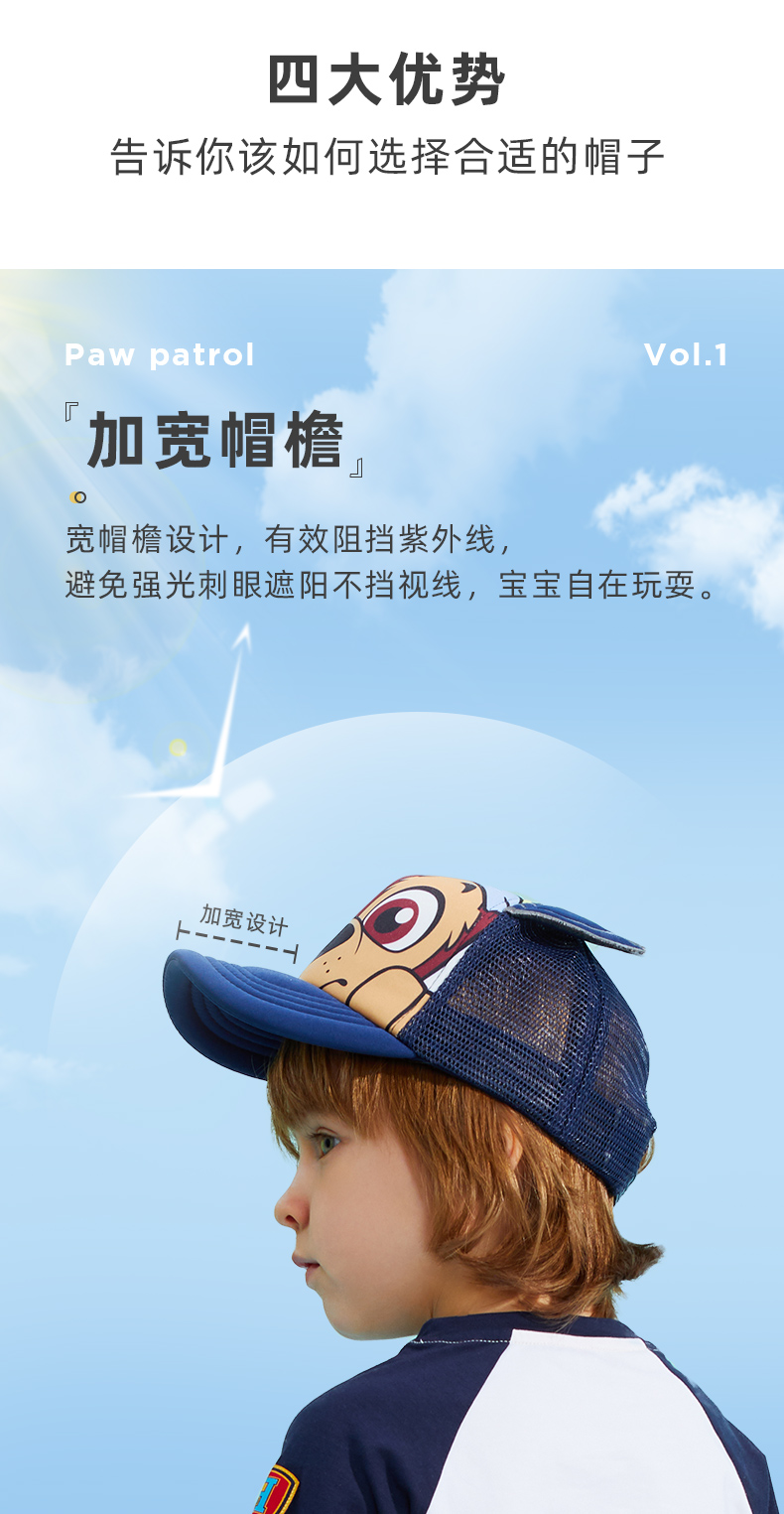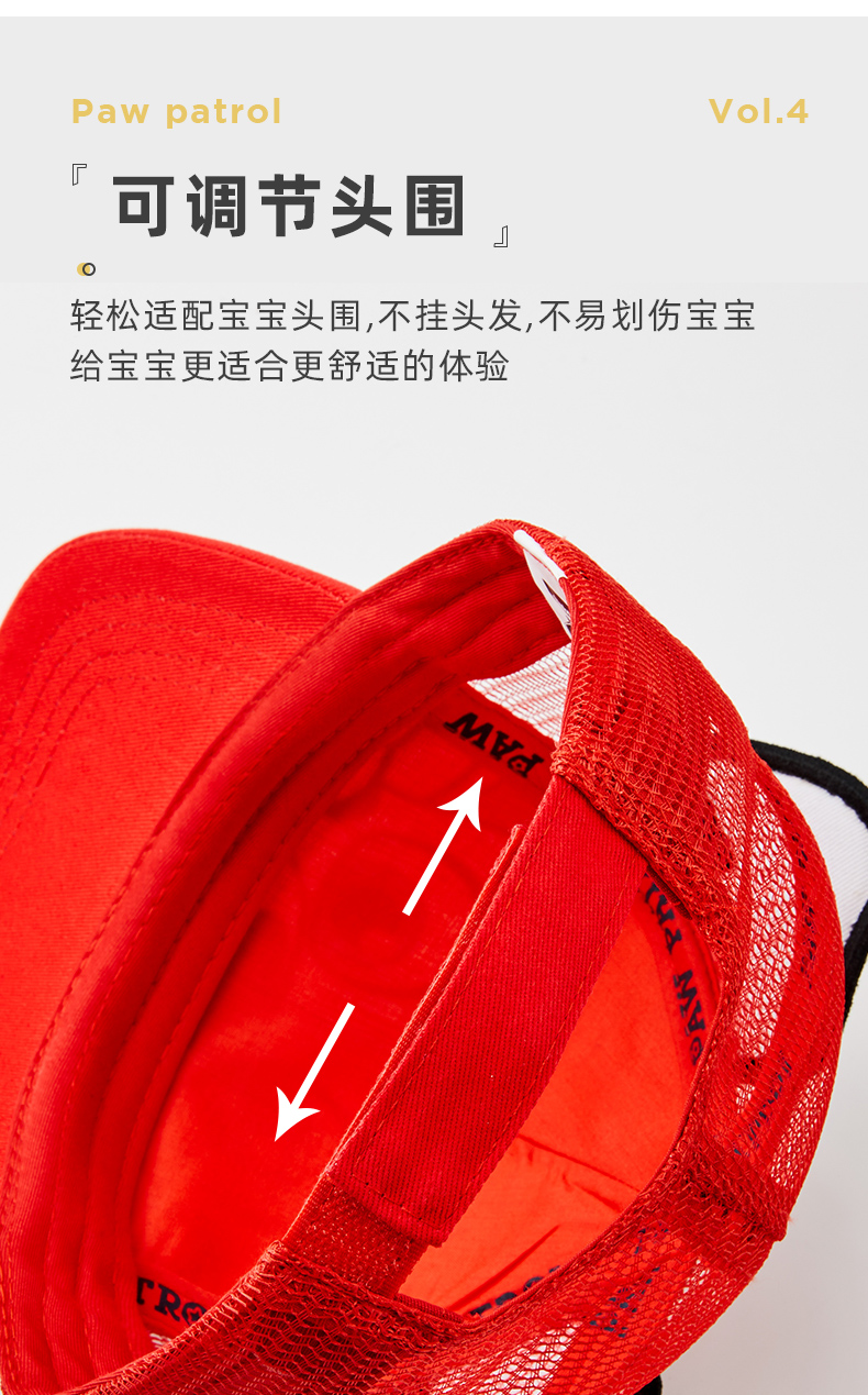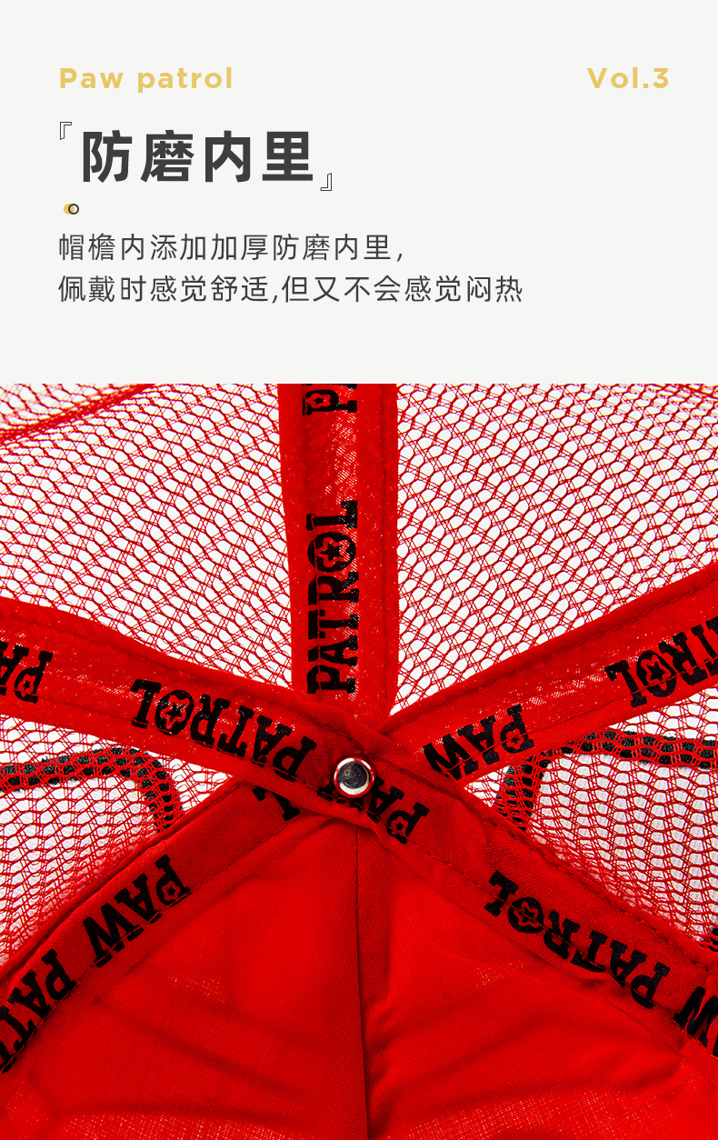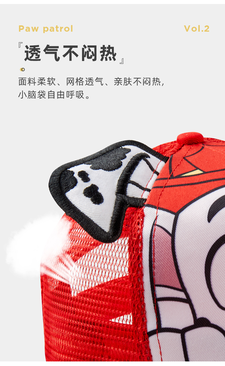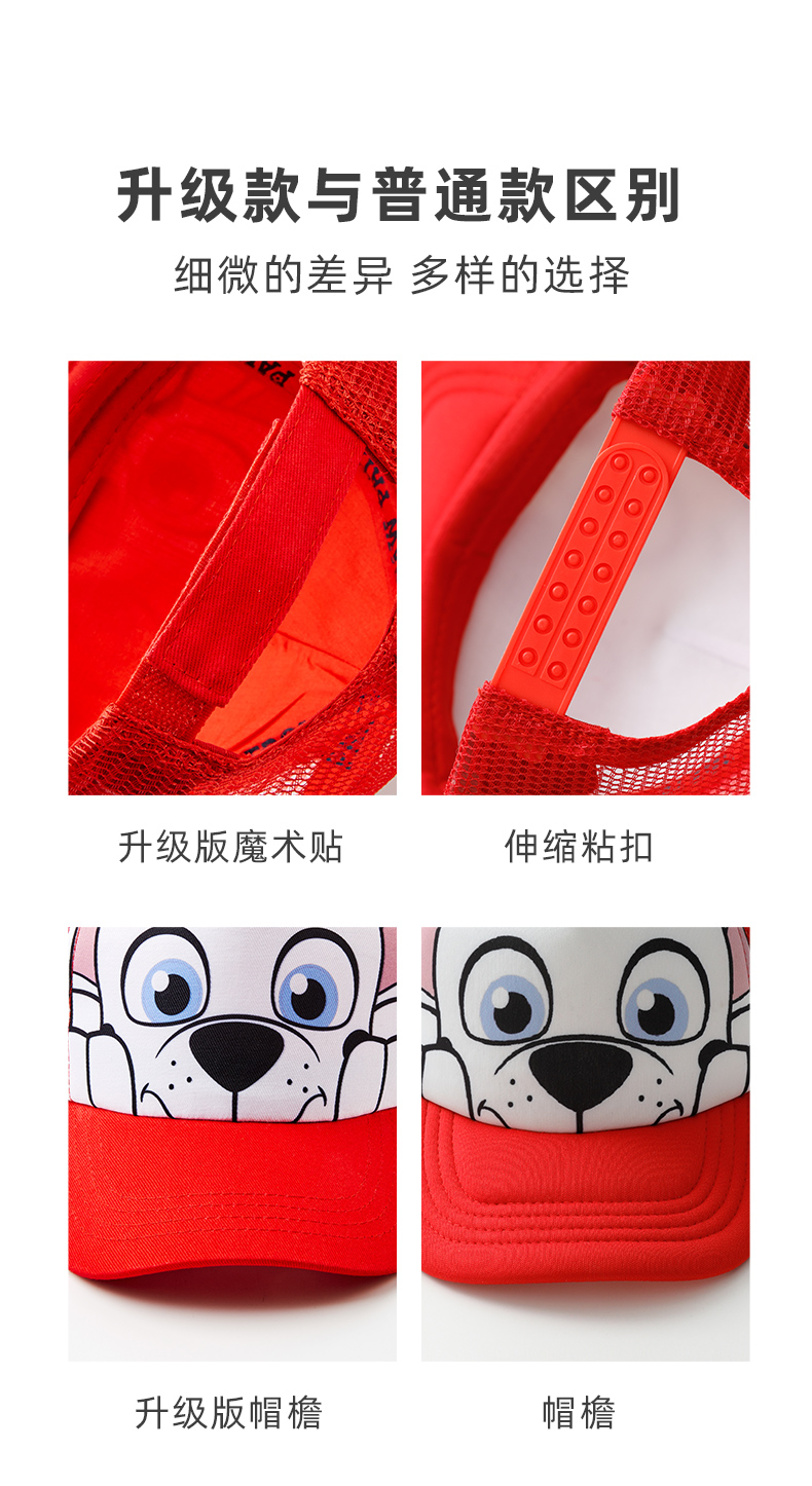 汪汪队立大功正版授权,立体弧形帽檐,不挡视线,后脑勺网眼透气,散热快,配有可调节暗扣,可随意调节大小。