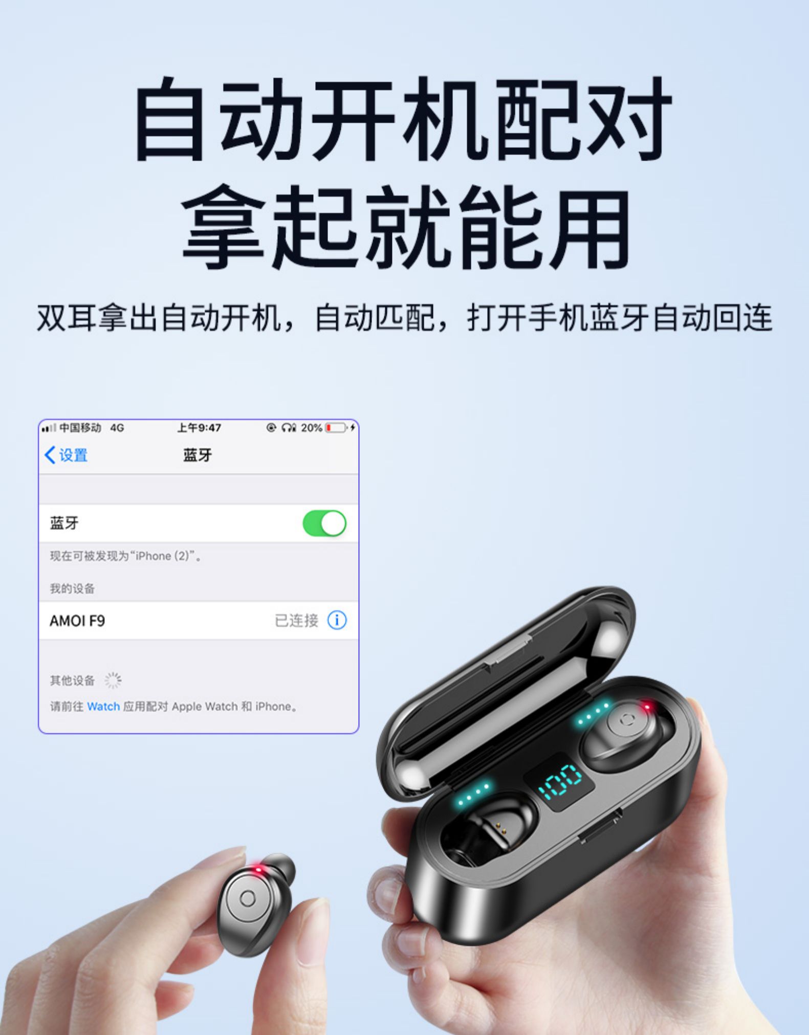 天猫amoi夏新安凯欣专卖店29.8元,可领10元优惠券,实付19.8元到手,后3款此价;一键智能操控+自动开机配对+9D音效智能降噪。最后1款此价,主要升级了耳机+充电盒的实时电量显示,自动开机配对和呼叫siri功能,券后价格和之前的旗舰版差不多,还没有TWS(真无线)蓝牙耳机的朋友可以考虑入手。