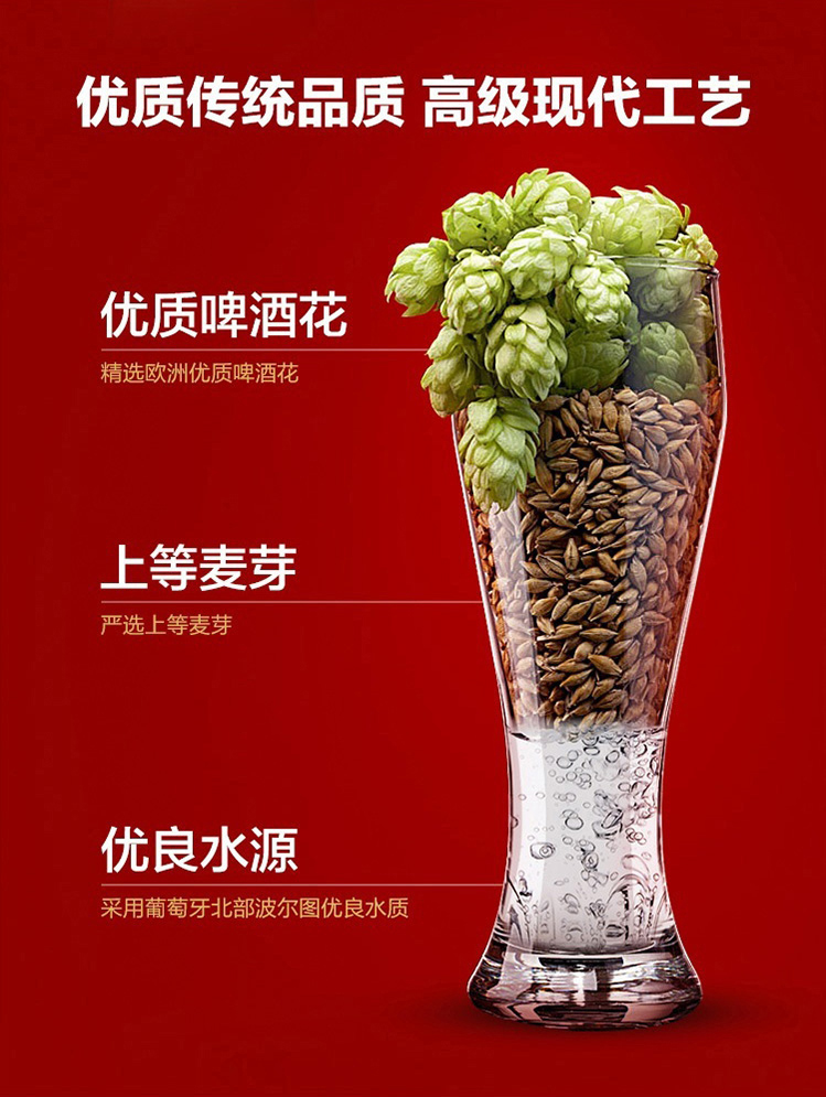 SUPER BOCK超级波克啤酒是葡萄牙的第一品牌,在葡萄牙的行业地位等同于中国的茅台,称之为“葡萄牙国酒”,在全球最权威的世界食品品质评鉴大会上,唯一能连续获得35次金牌大奖及无数银奖的酒类产品。
