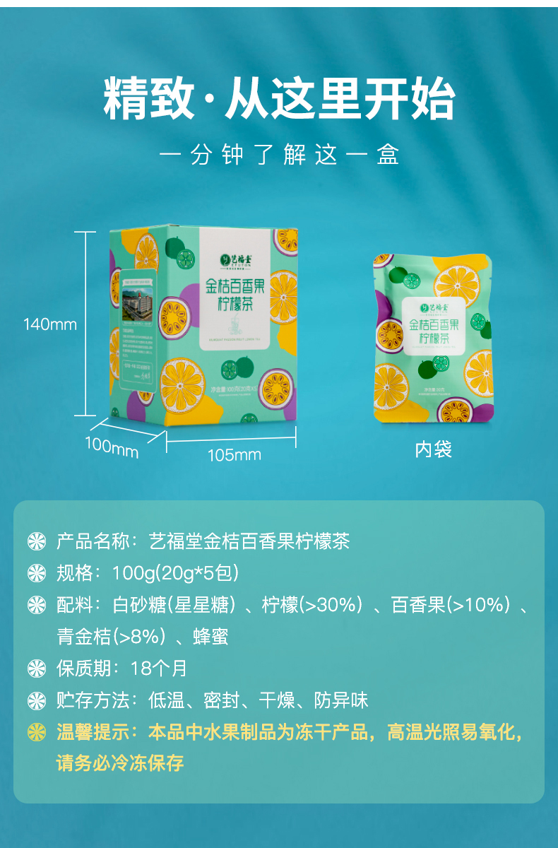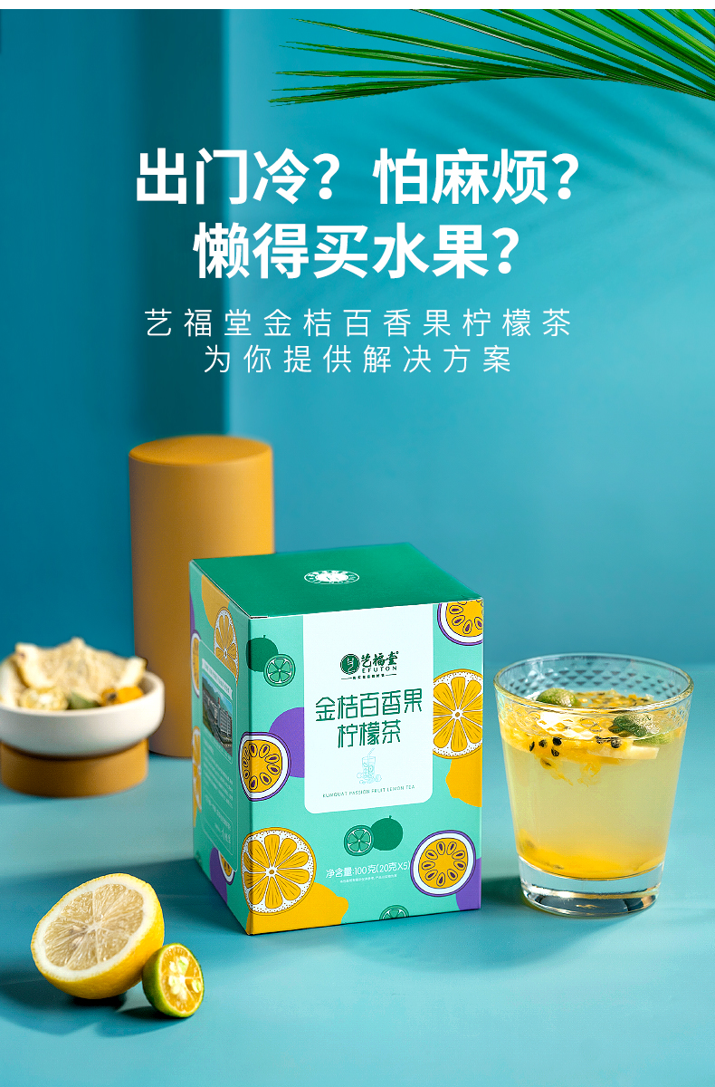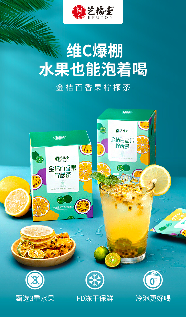 这款艺福堂 金桔柠檬百香果蜂蜜柠檬茶,甄选优质青金桔、百香果、柠檬片片鲜切,使用FD冻干而成,建议使用冷泡,满口酸甜鲜活冰爽,补充身体维生素C。