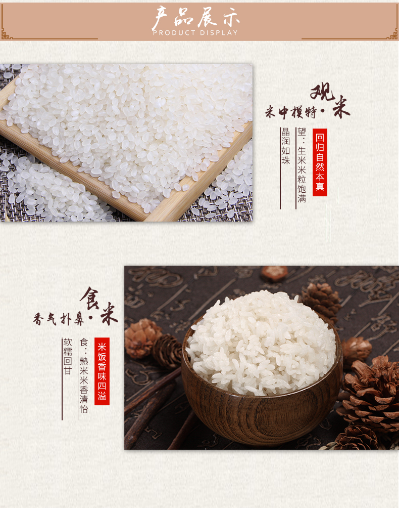 盘锦蟹田稻米,米稻田内既种稻又养蟹,形成了水稻护蟹,蟹吃虫饵,蟹粪肥田的天然食物链。所生大米粒大而圆,煮饭汁液晶莹剔透,细腻润滑,为稻米中之上乘。颗粒饱满,入口香甜。清新自然香味,口感软弹,米质精良。