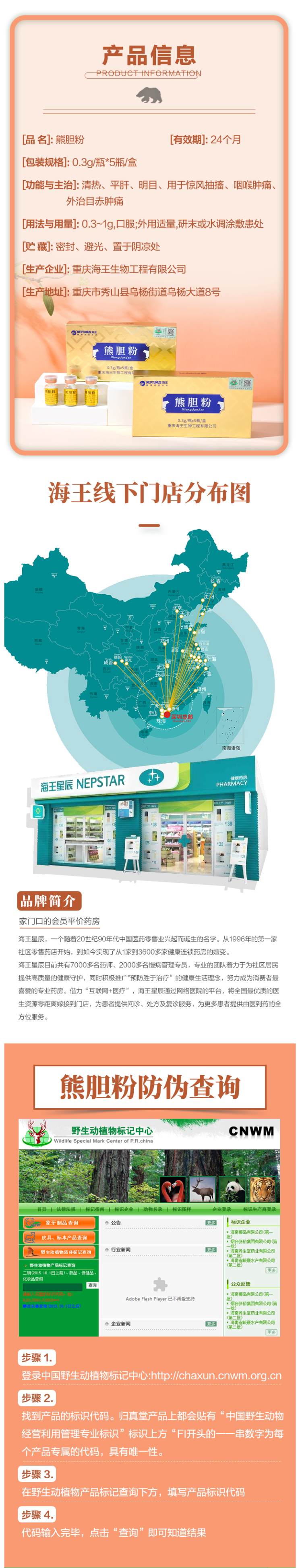 熊胆粉被称为药中黄金,这款海王熊胆粉清热、平肝、明目、用于惊风抽搐、咽喉肿痛、外治目赤肿痛。