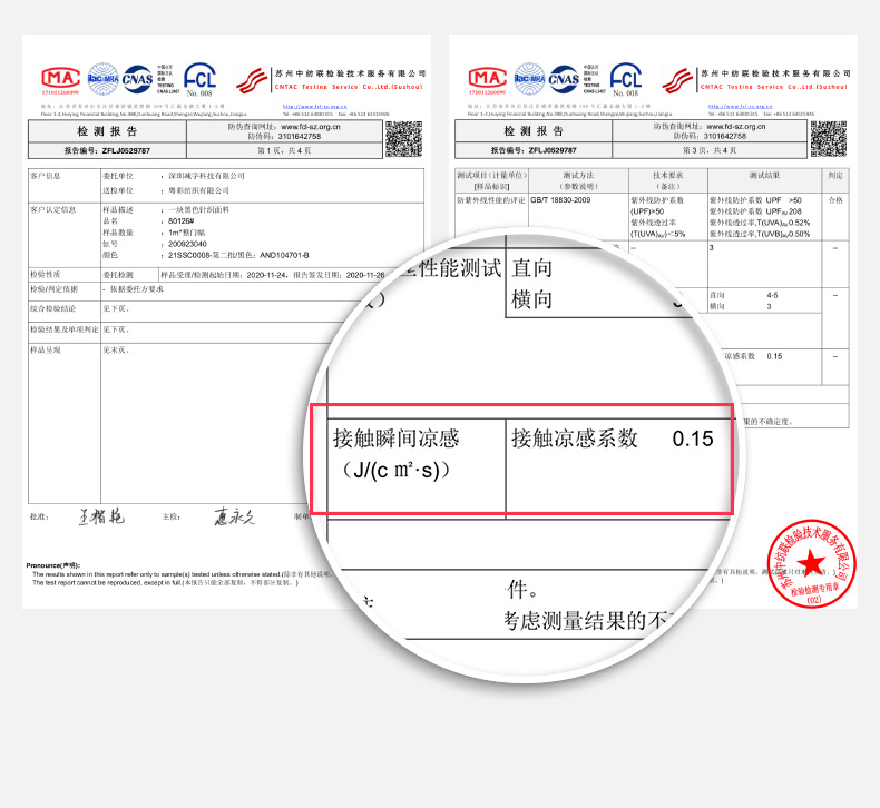 经BUTEC工艺处理注入高稳定性凉感粒子,形成能迅速将温度扩散的强力导热层,触肤凉感,带来持久有效的紫外线防护,经第三方检测机构检测,有效阻隔98%以上紫外线。