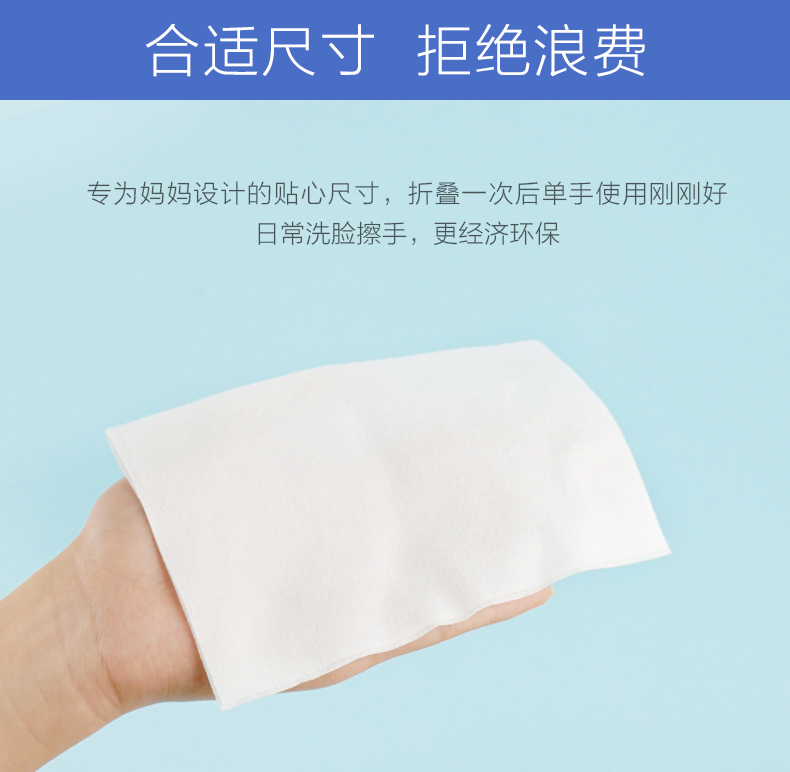 干湿两用,洁净加倍,吸水秒变毛巾,浸上酒精秒变消毒棉片,美容清洁化妆卸妆,一巾解决。柔软厚实不掉絮,无荧光剂,漂白剂,宝宝和妈咪都可以使用。