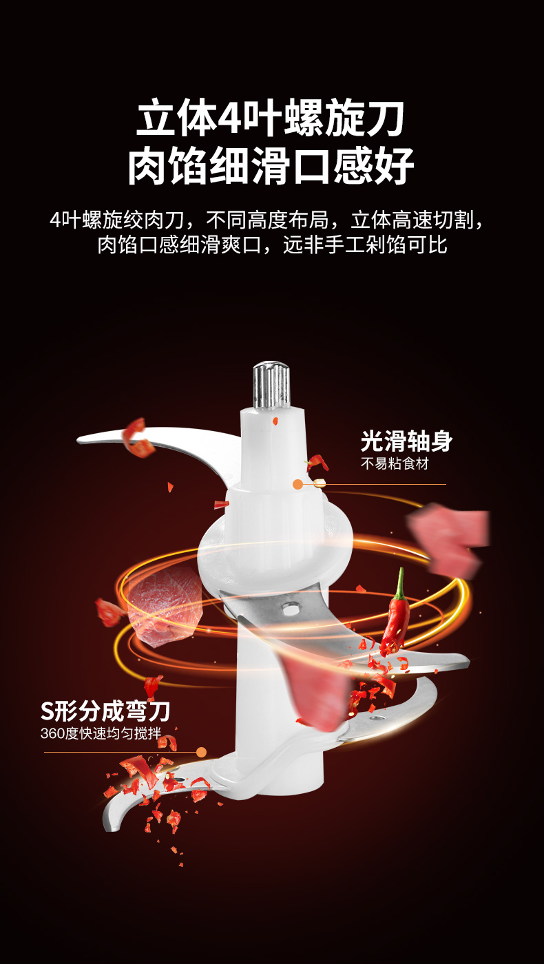 天猫四季沐歌花非尔专卖店79.9元,可领40元优惠券,实付39.9元到手,1.5斤容量一套刀具此价,小型电动搅碎器,功率是300W,使用双层4叶不锈钢刀片,立体S型设计,能均匀切割搅碎。厚实的玻璃碗体。拥有快、慢双档转速调节,适合不同食材