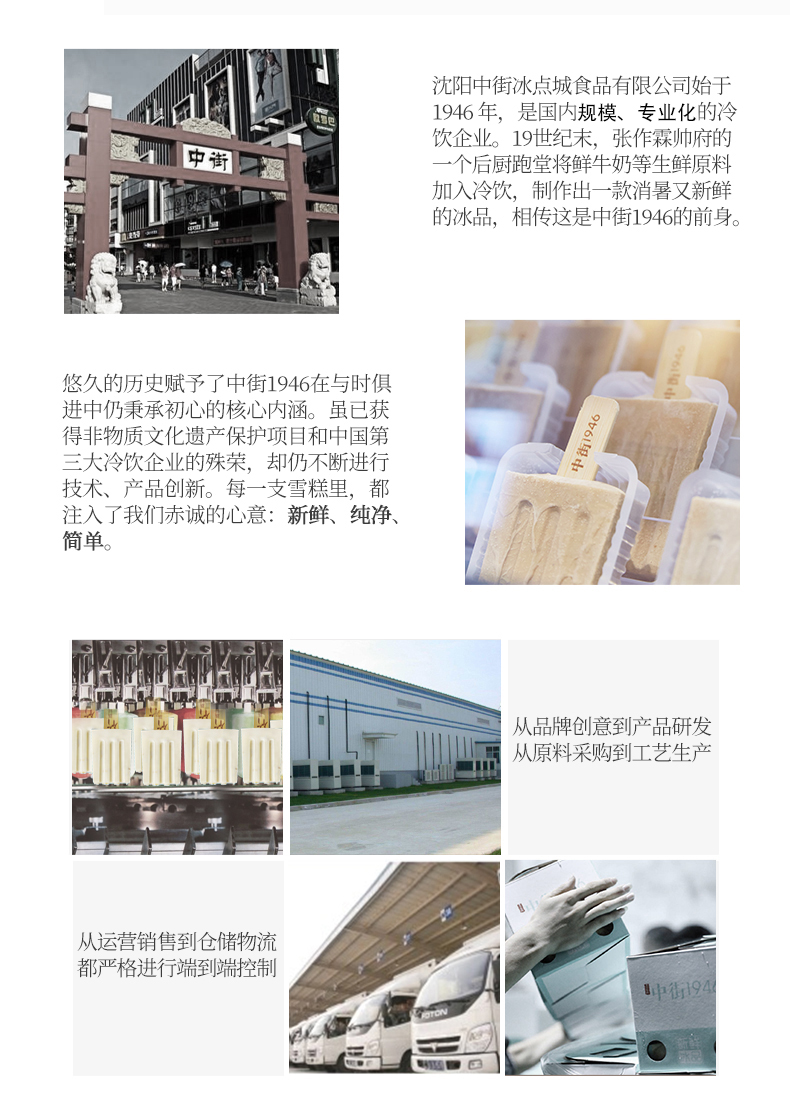 中街1946,地道的东北雪糕,它来自沈阳,是卖了70多年的专业雪糕老字号,据说这款中街1946始于张作霖大帅的后厨房,由后厨的朱渊红发明,最早的那支中街雪糕是做给张大帅吃的,被大帅赞不绝口,渐渐从张府流传入东北百姓人家!进而闻名天下