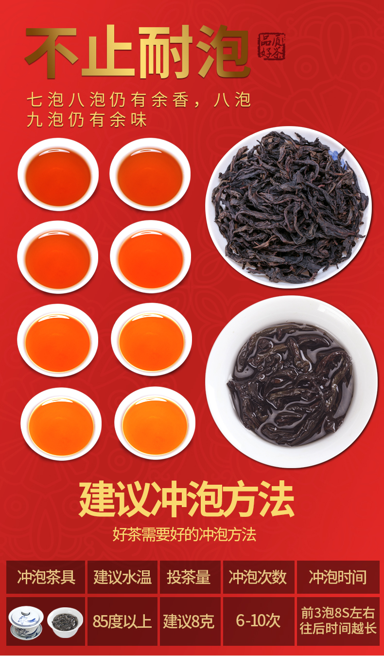 大红袍,产于福建武夷山,属乌龙茶,品质优异。中国特种名茶。其外形条索紧结,色泽绿褐鲜润,冲泡后汤色橙黄明亮,叶片红绿相间。品质最突出之处是香气馥郁有兰花香,香高而持久,“岩韵”明显。