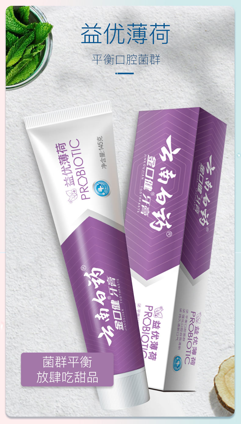 天猫云南白药旗舰店56元,可领10元优惠券,实付46元到手,旗舰店发售,云南白药牙膏益生菌,含益生菌CPT,冻晶干燥技术保全益生菌活力,有效祛除口腔异味菌体,口气清新,缓解口腔问题,减缓牙龄出血。