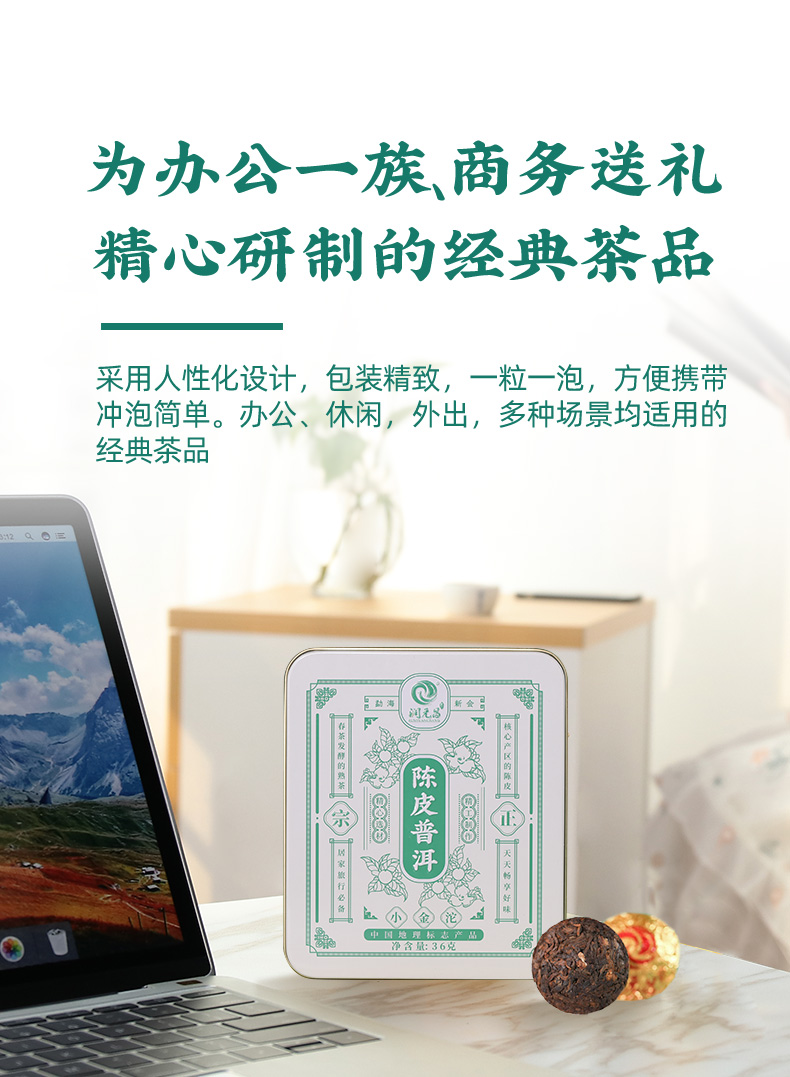 这款虎标 新会陈皮普洱茶叶,精选勐海大树春茶与新会核心产区陈皮为原料,精心研制而成。传承了传统口感工艺,出汤快,滋味醇;人性化设计,独立包装精致,一袋一泡,方便携带。办公、休闲、外出,多场景均适用。