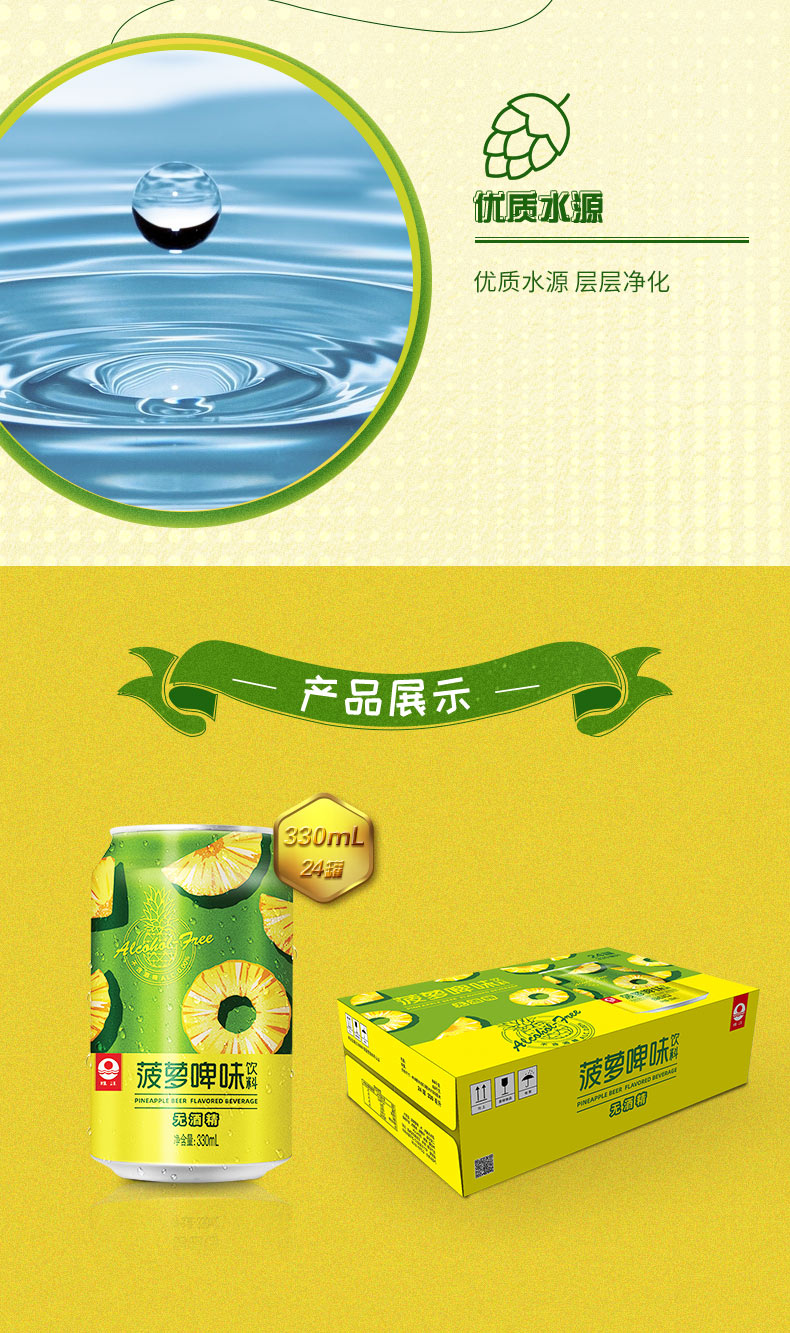 虽说名为菠萝啤,但该产品本质上其实还是汽水饮料,因为它并不含酒精。所以,你可以把它理解为菠萝啤酒味汽水,是酸甜菠萝味和劲爽啤酒香的组合。