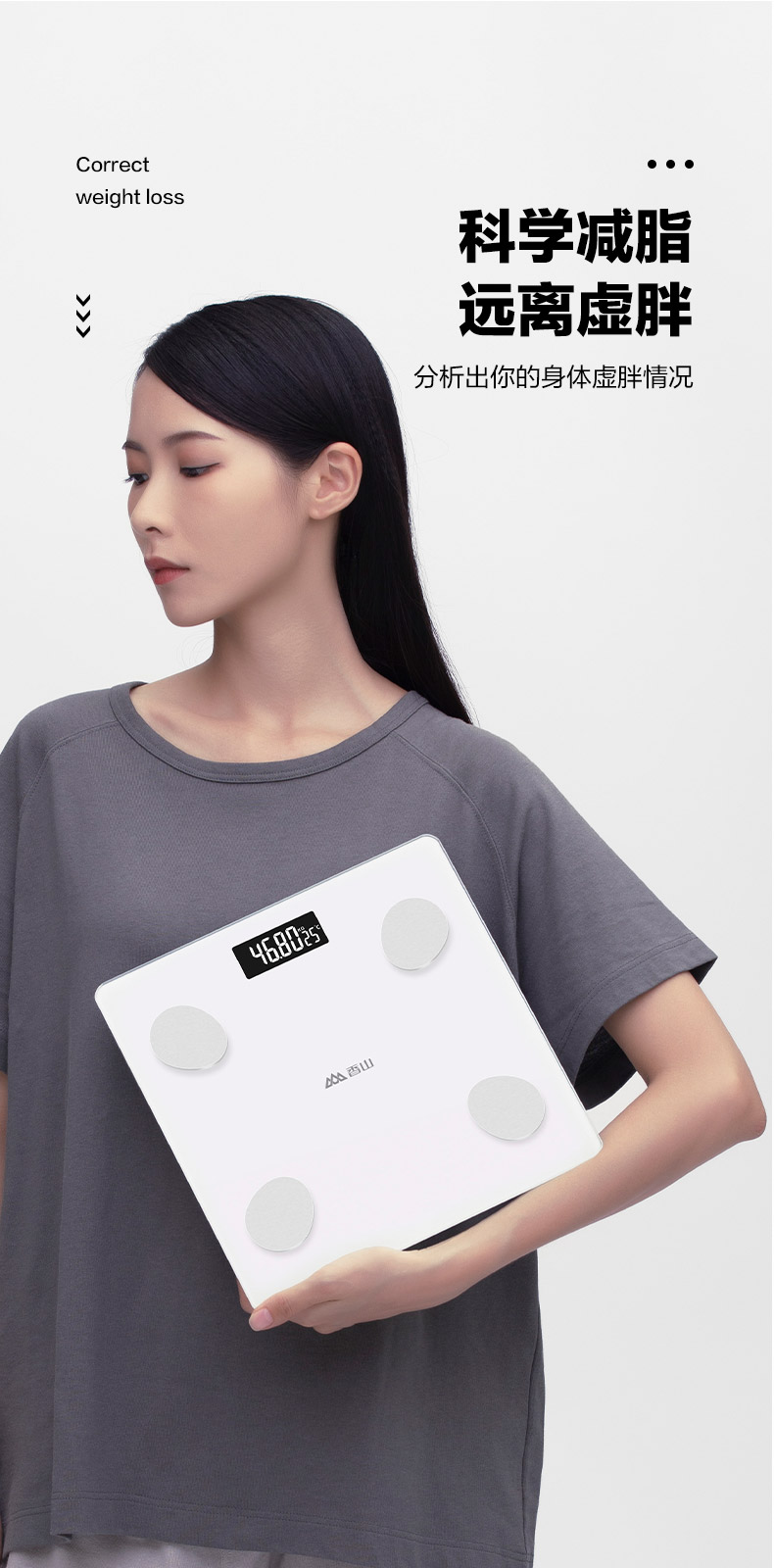 可监测12项身体数据,包括体重、体胖指数、BMI、水分、肌肉指数、蛋白质、身体年龄、基础代谢、活动代谢、骨骼肌量、体型、健康评分,在连接APP时,展现并自动分析你的数据,APP可制定你的瘦身计划和饮食规划,支持IOS和安卓。