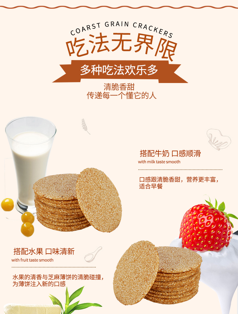 天猫小鸟阿吉旗舰店29.9元,可领10元优惠券,实付19.9元到手;铁棍山药芝麻脆饼传统糕点厂家直销。薄饼色香味俱全,薄薄一片,一咬就碎。采用中粮特等低筋面粉、铁棍山药、芝麻、制成,富含膳食纤维,均衡营养补充能量。当早餐干吃或者搭配酸奶等食用都可。