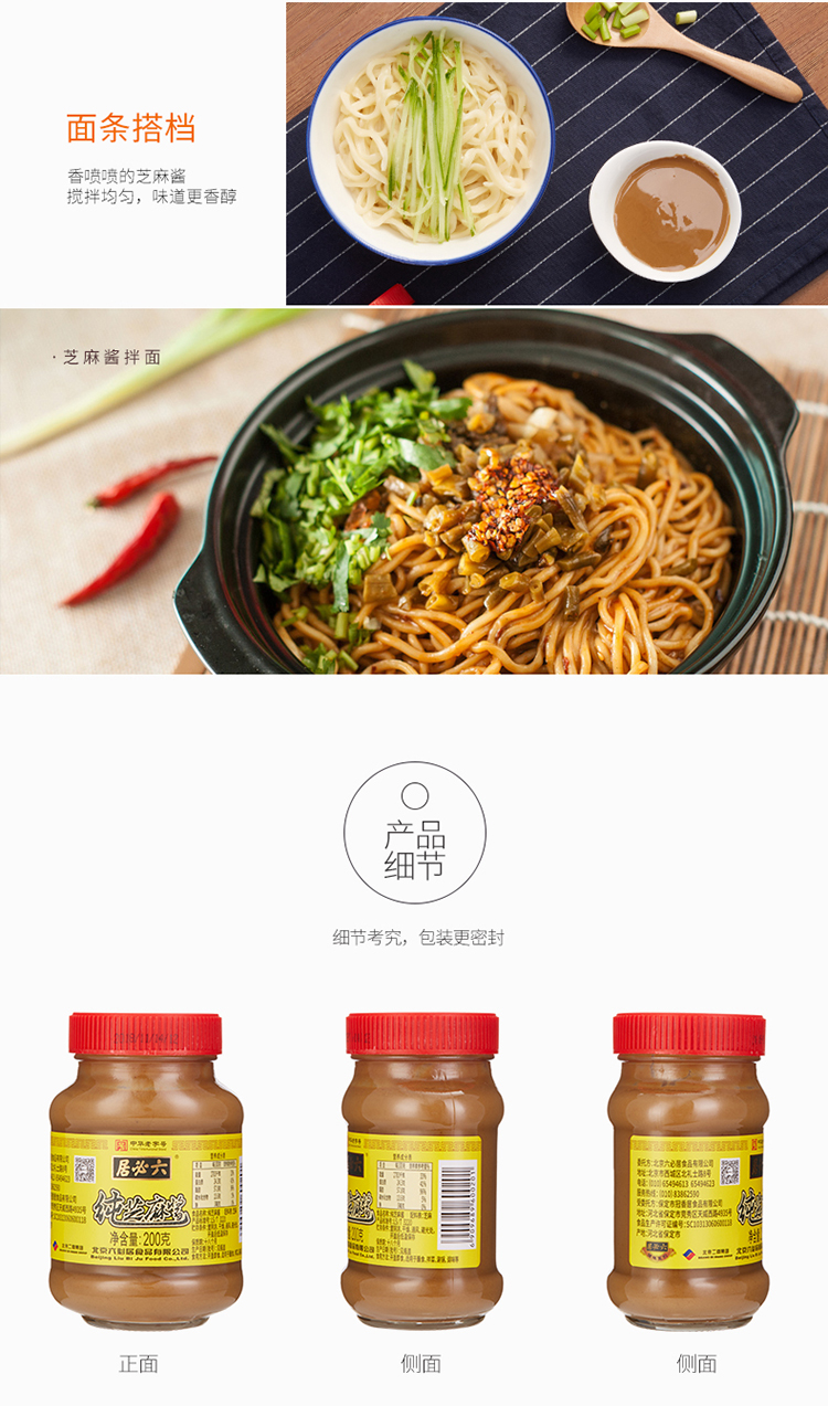 天猫六必居旗舰店24.9元,可领10元优惠券,实付14.9元到手,中华老字号品牌,精选白芝麻,采用传统小磨工艺和国际先进超细碎技术,成口色泽清澈,持地细腻,香味浓郁,醇厚之久,适用于火锅蘸酱、馒头、面包、涂抹和凉拌菜调料。