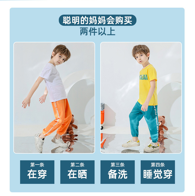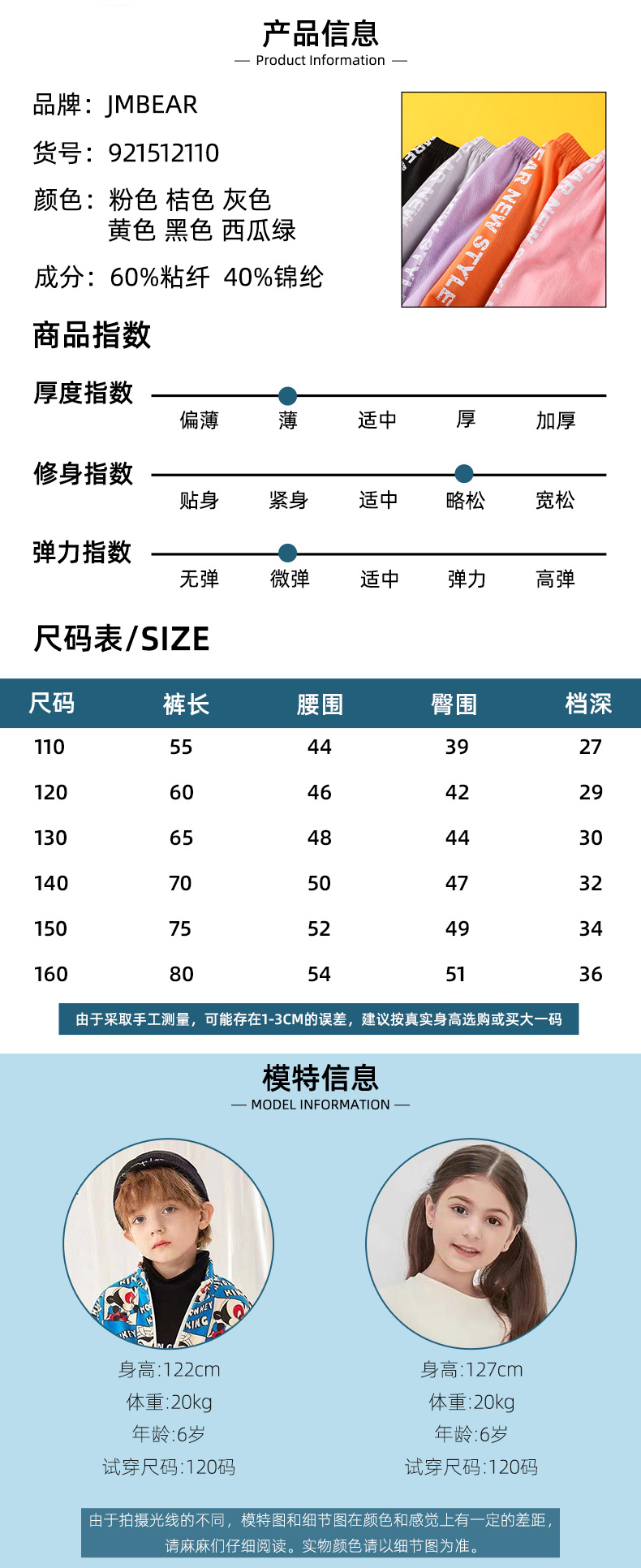这款杰米熊 男女童轻薄冰丝休闲运动裤,冰丝透气面料,舒适清凉,薄而不透;宽松的哈伦裤版型,既舒适又兼顾运动感;弹力裤腰,弹性适宜不勒腰;侧边印花字母点缀,简约时尚又百搭;松紧裤脚,裤脚不易上跑,防蚊效果好。
