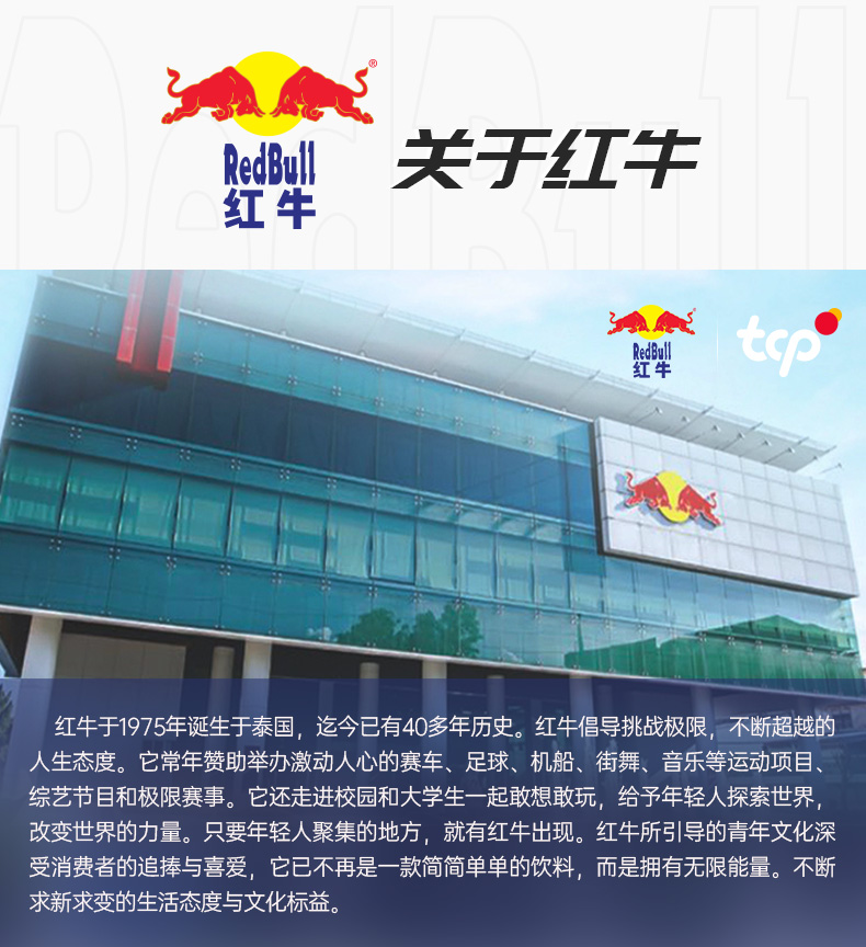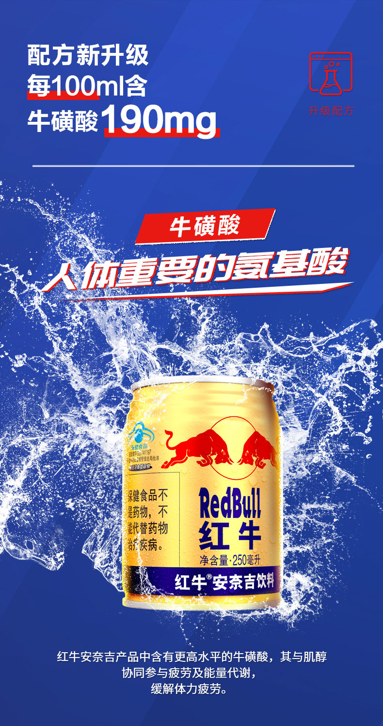 泰国天丝医药保健有限公司授权,redbull红牛旗舰店旗舰店直发,品质可靠。Red Bull 红牛是全球首先推出且被人熟知的的能量饮品之一。内含水、糖、咖啡因、muco-纤维醇和维生素B等成分的“滋补性饮料”,特别添加西洋参提取物,补气益脑,提神抗疲劳,熬夜加班、长途驾驶、运动健身补充能量。