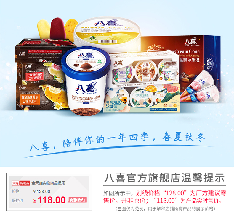 天猫八喜旗舰店159.8元,可领40元优惠券,实付119.8元到手,规格550g*4桶。香草、朗姆、白桃乌龙、绿茶、芒果、饼干、草莓多种口味可选。