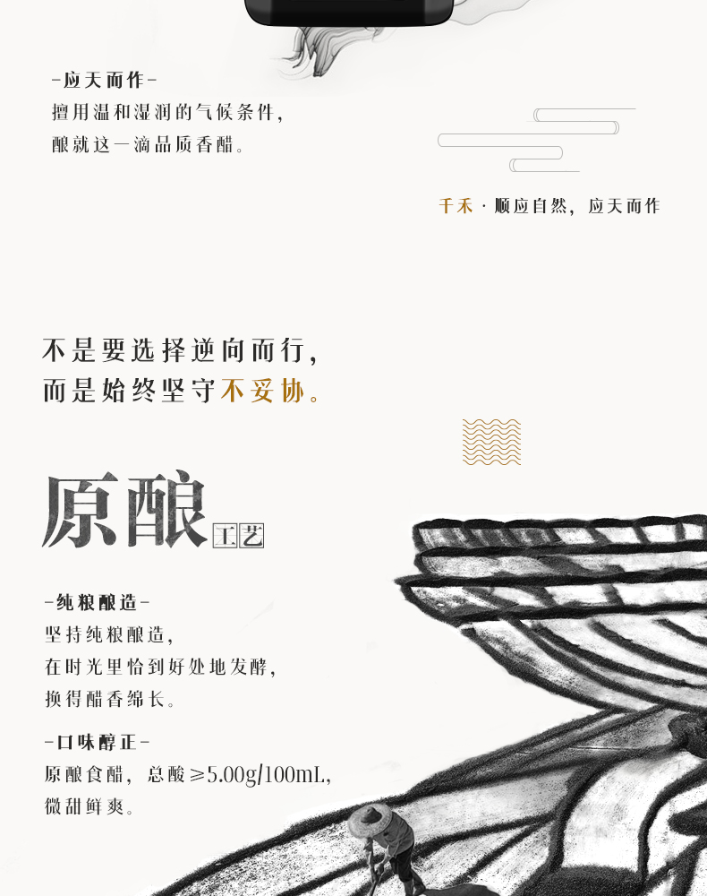 千禾是国内知名调味品食品品牌。此款为千禾 零添加糯米香醋,非转基因原料纯粮酿造,原味原香零添加,固态发酵,总酸≥5g/100ml,口味纯正,微甜鲜爽,适合炒菜、凉拌、饺子蘸料。规格为1L/瓶。